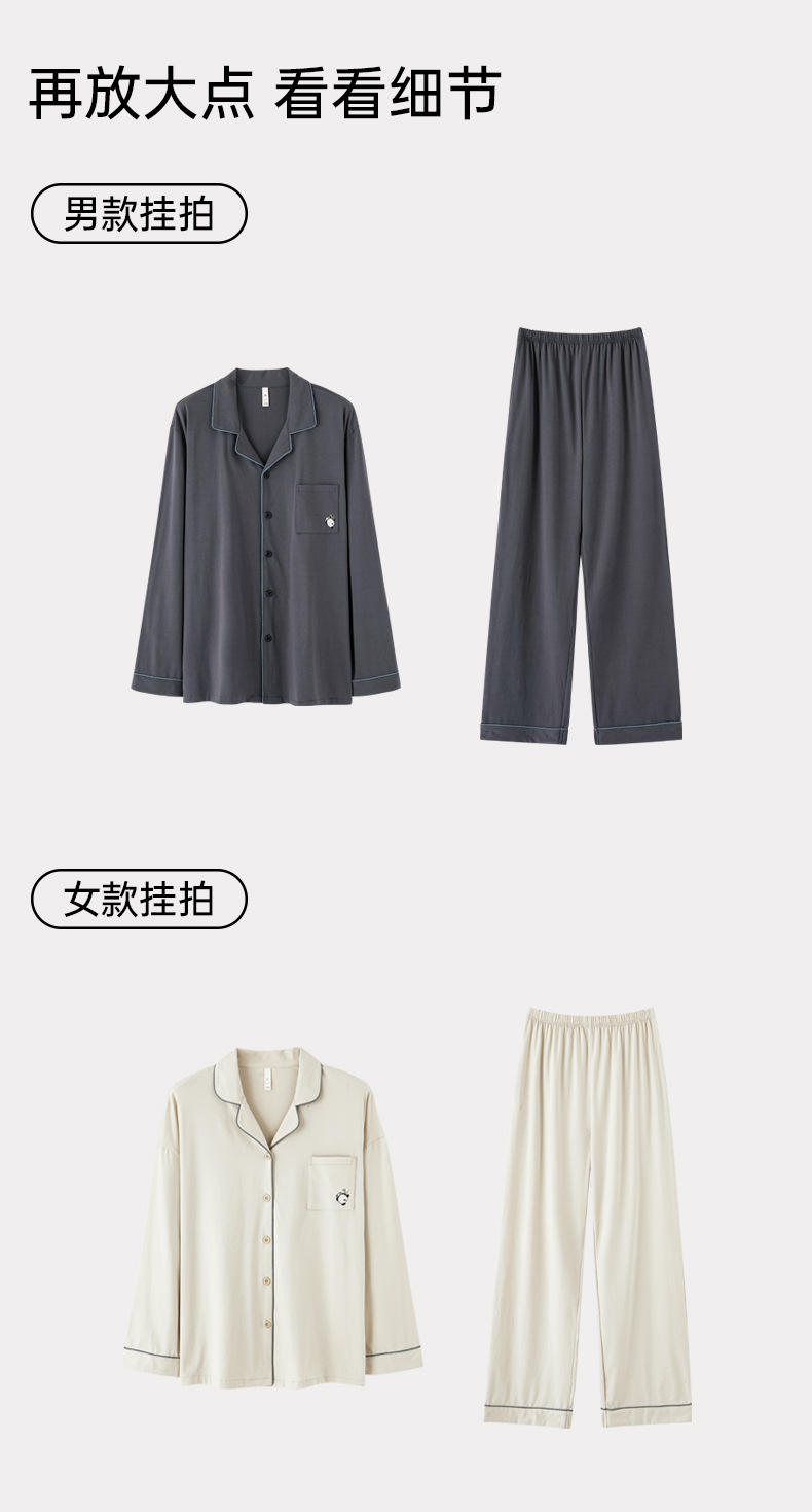 带胸垫秋季情侣睡衣纯棉长袖春季女式家居服男士套装纯欲风高级感