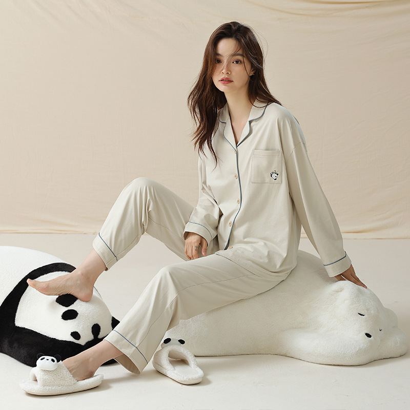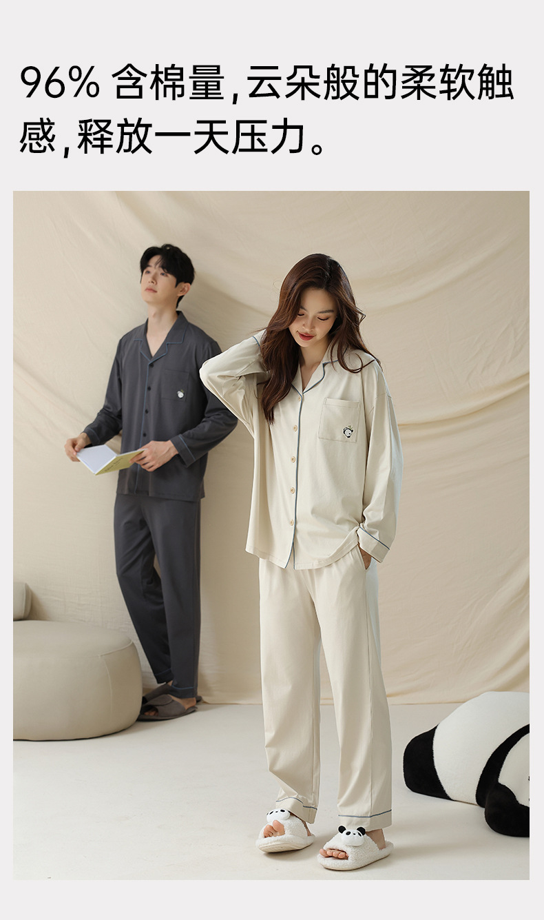 [항균 및 항 진드기] 가을 면 여성 잠옷 새 커플 홈 옷 팬더 패턴 긴 소매 남성 세트스토어 가기