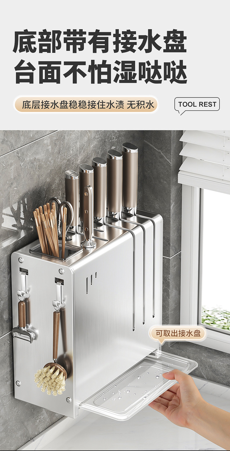 나이프 랙 스토리지 랙 스테인레스 스틸 주방 나이프 스토리지 새로운 벽에 장착 된 다기능 가정용 나이프 젓가락 케이지