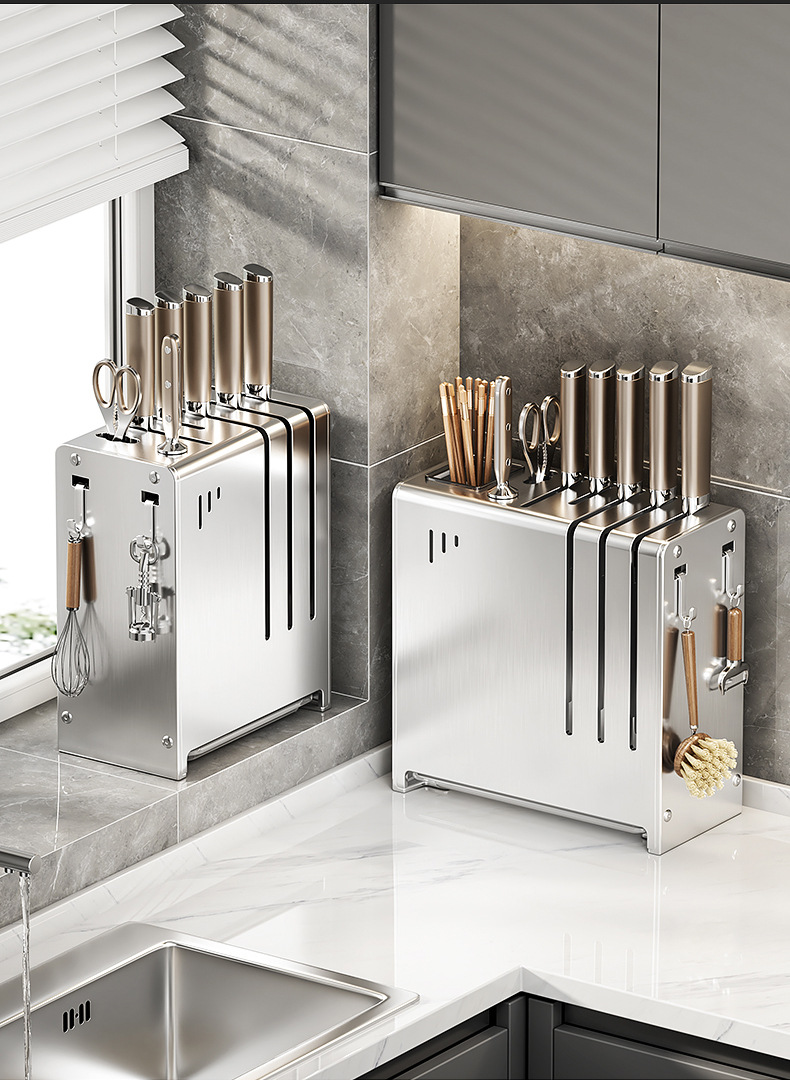 • 스테인레스 스틸 조리대 칼 홀더(젓가락 꽂이 포함) 3056