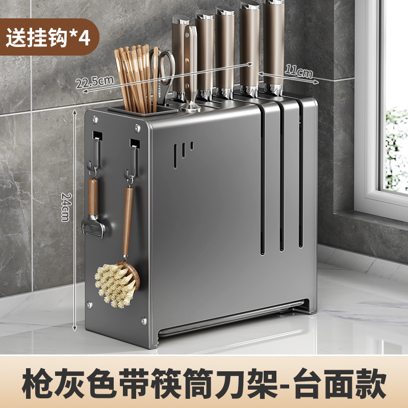 • 젓가락통이 달린 회색 조리대 칼꽂이 3056