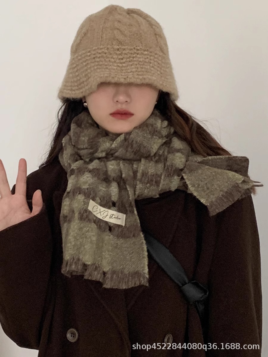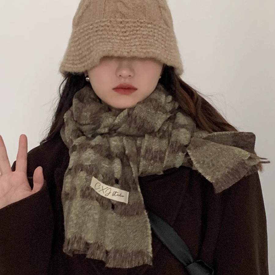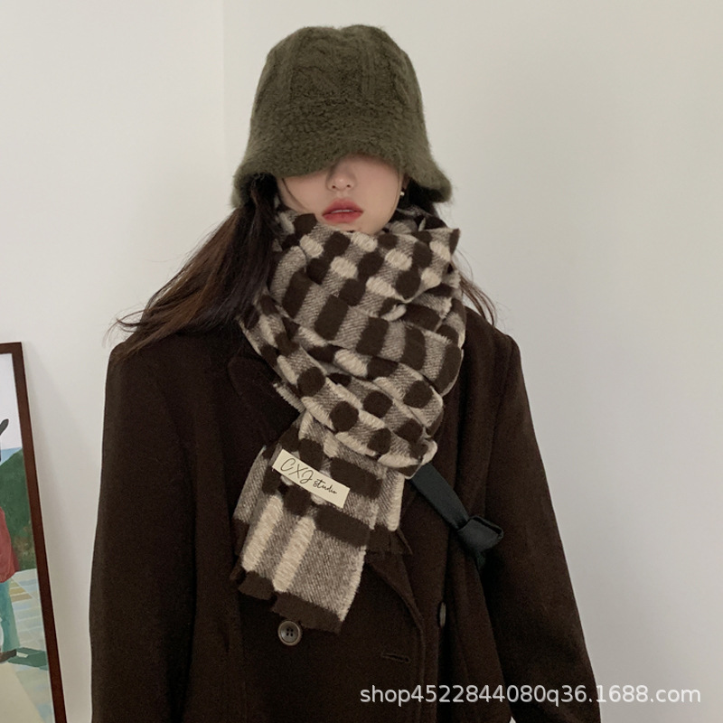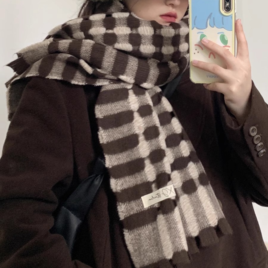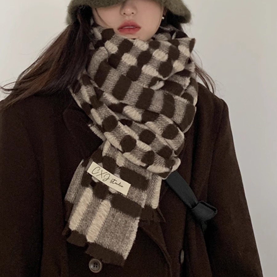 니치 두꺼운 격자 무늬 스카프 여자 2024 년 겨울 새 한국식 올매치 학생의 목도리 이중 목적 따뜻한 목스토어 가기
