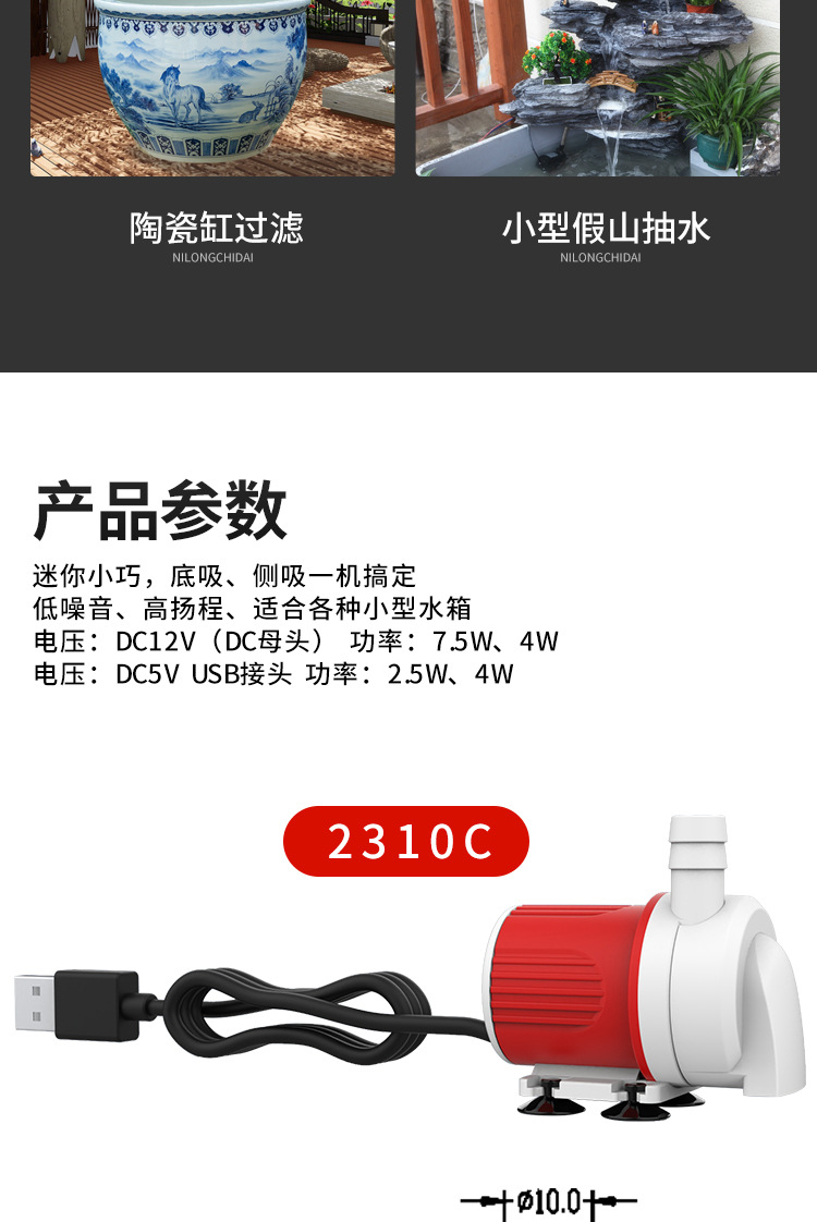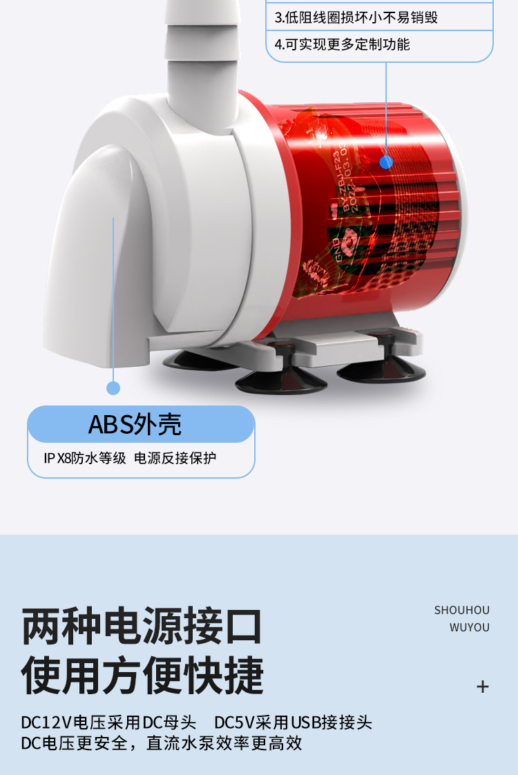 DC 브러시리스 잠수정 펌프 12V 어항 필터 순환 워터 펌프 무음 USB 펌핑 바닥 흡입 펌프 흠없는 재배 펌프