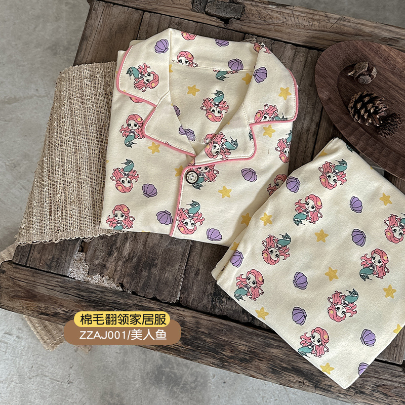 빵토끼 순면 아동 홈웨어 24 가을 겨울 긴팔 투피스 세트 남아 여아 카라 홈웨어 세트