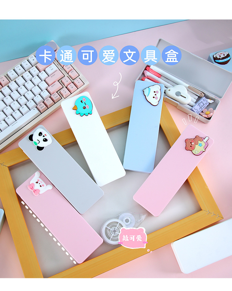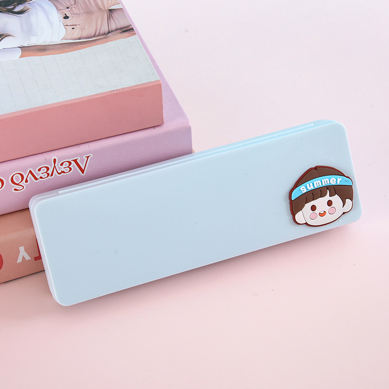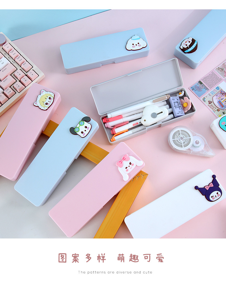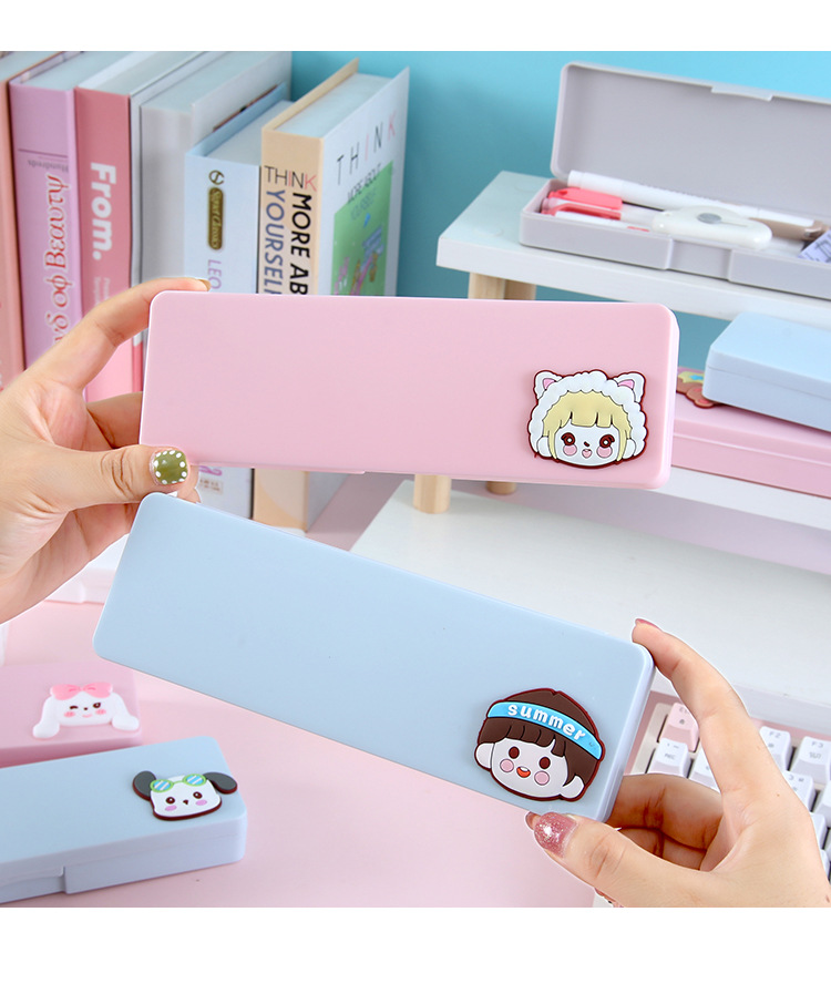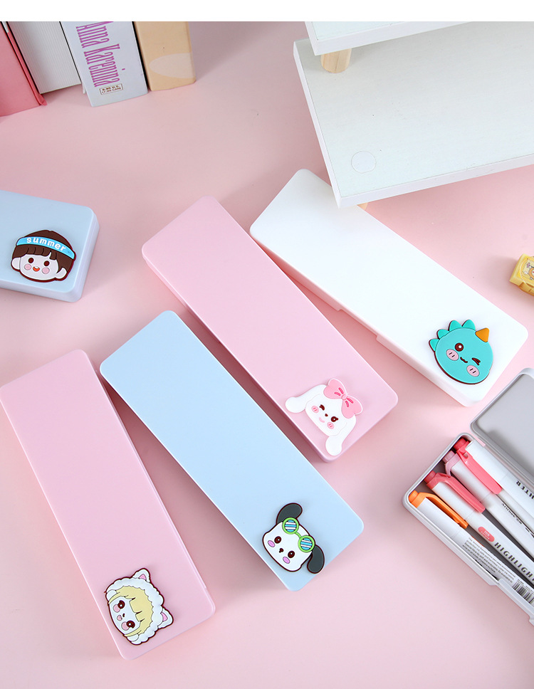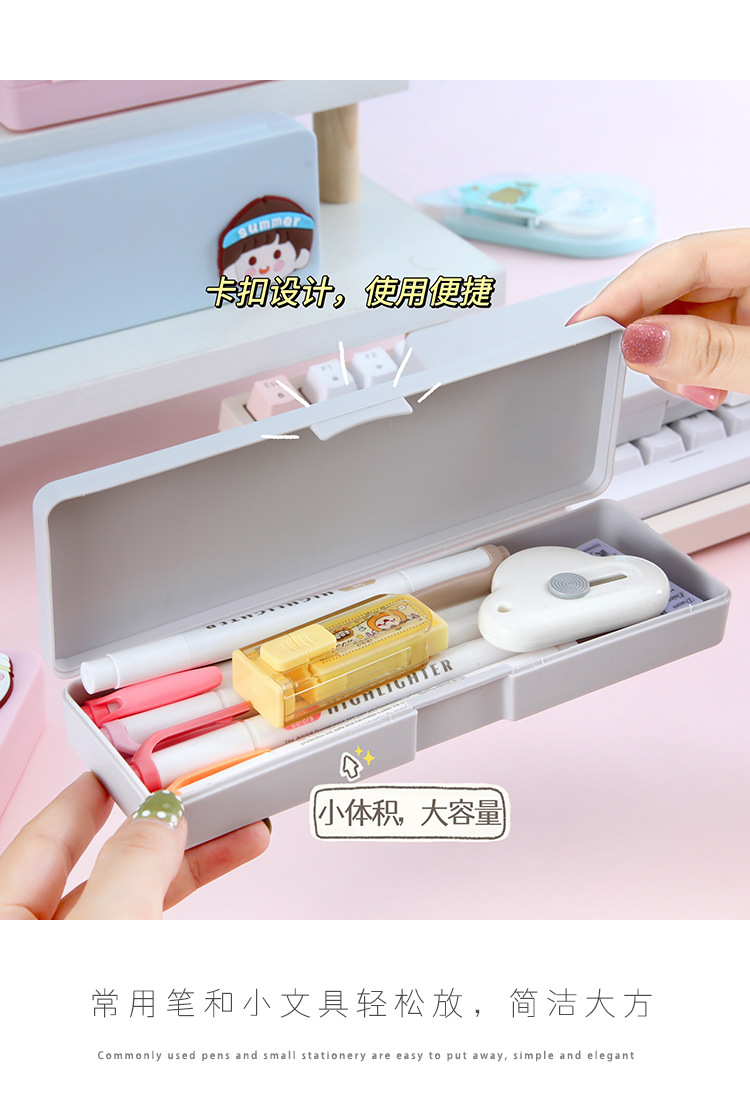 귀여운 만화 문구함 초등학생 학습용 문구 다기능 수납함 어린이용 심플 플라스틱 필통