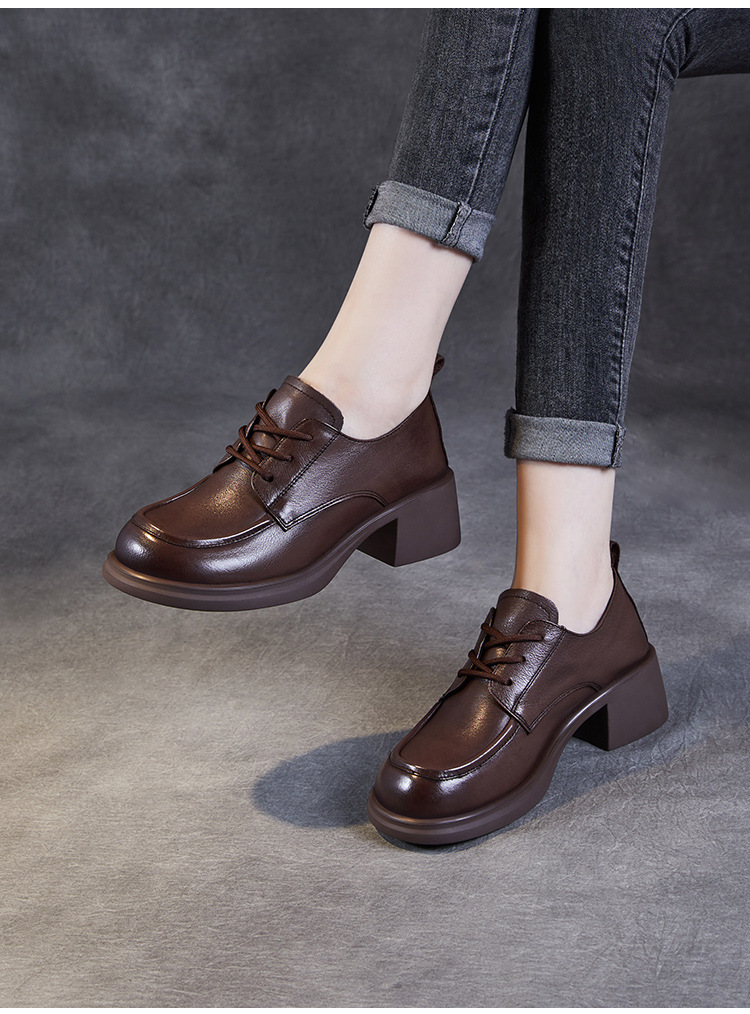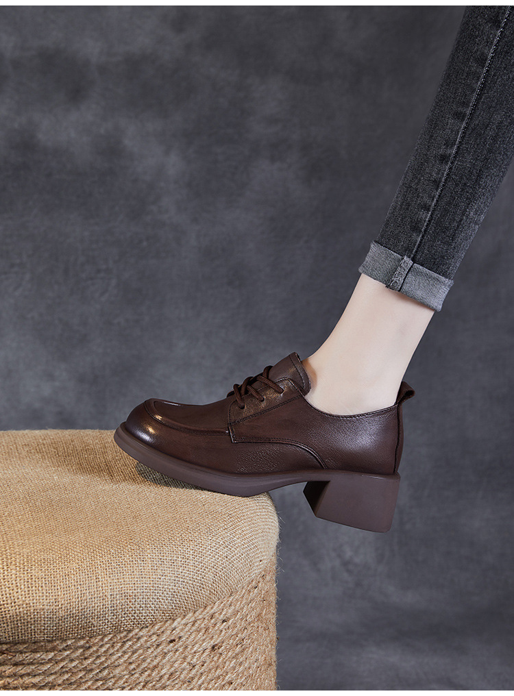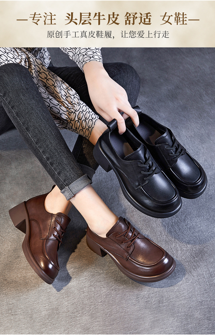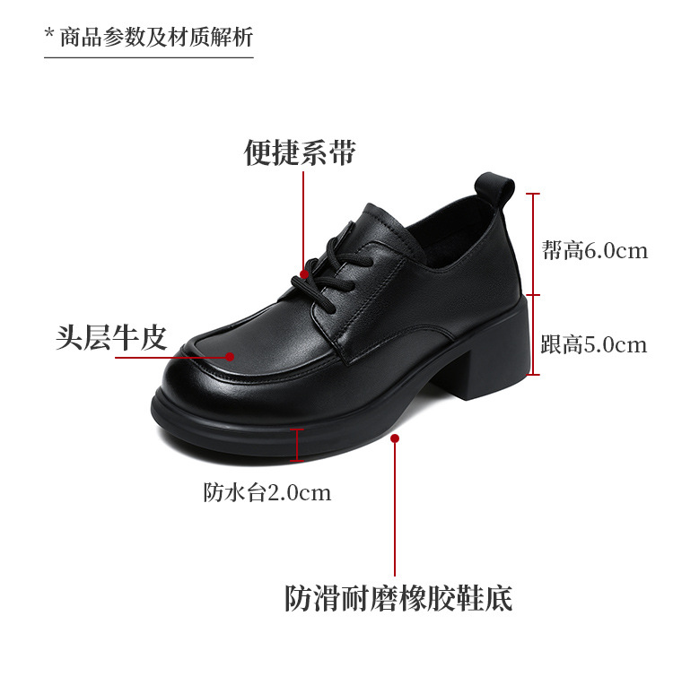 하이힐 여성의 가을 2024 새로운 가죽 두꺼운 힐 신발 편안한 검은 통근 신발 두꺼운 단독 작은 가죽 신발스토어 가기
