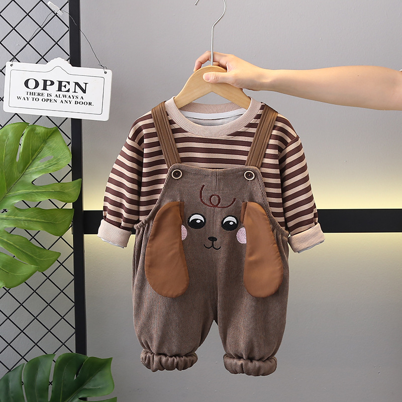 어린이 멜빵 세트 2024 새 봄과 가을 아기 긴팔 옷 귀여운 곰 소년 투피스 패션스토어 가기