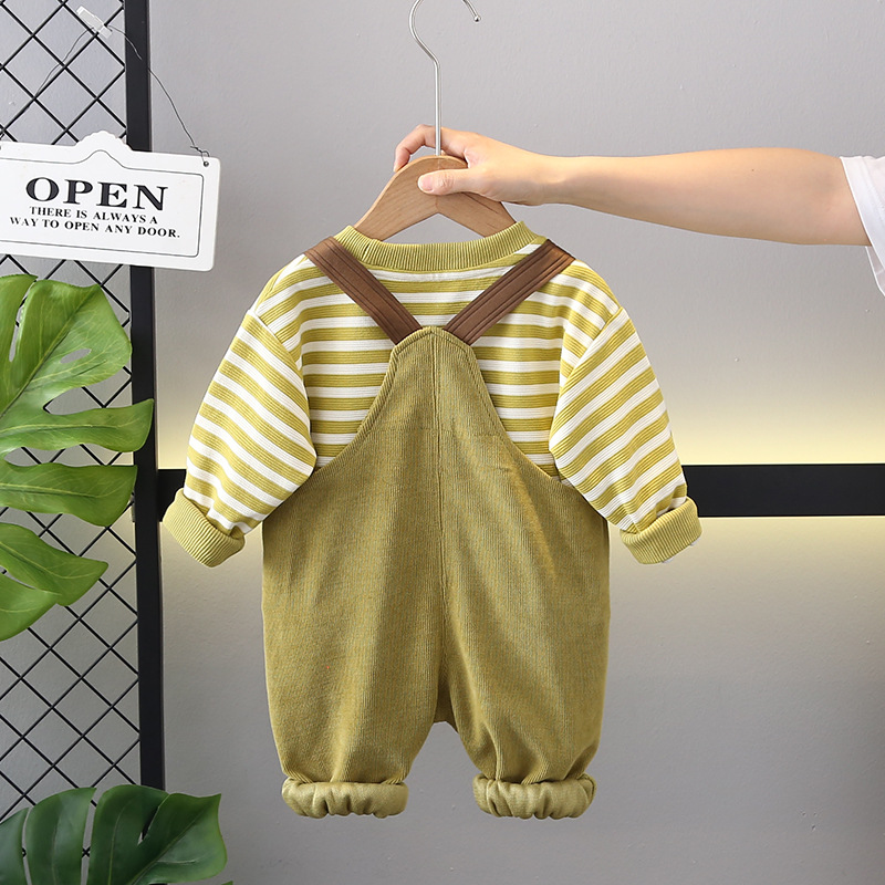 어린이 멜빵 세트 2024 새 봄과 가을 아기 긴팔 옷 귀여운 곰 소년 투피스 패션