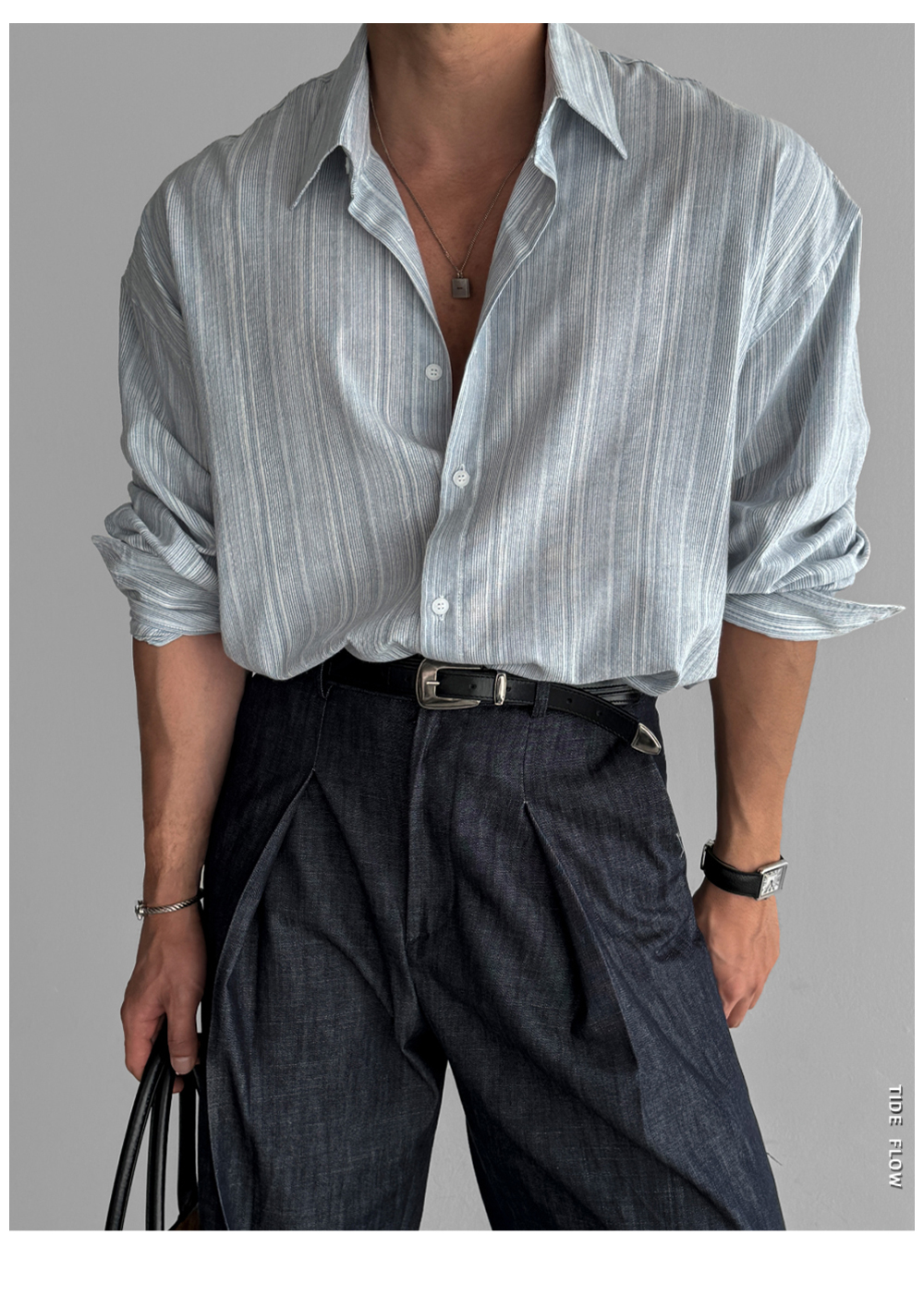 리넨 스트라이프 긴팔 셔츠 남자 봄과 여름 한국 스타일 라이트 성숙한 스타일 캐주얼 비 다림질 블루 라이트 선 스크린 셔츠스토어 가기