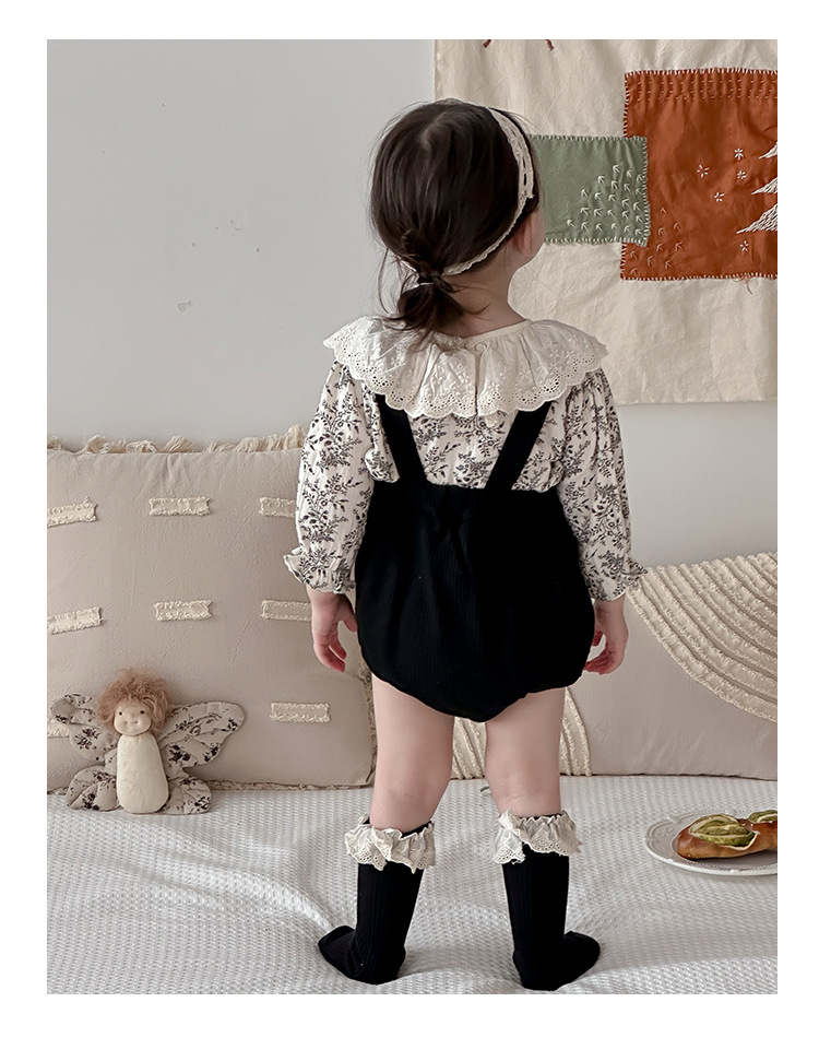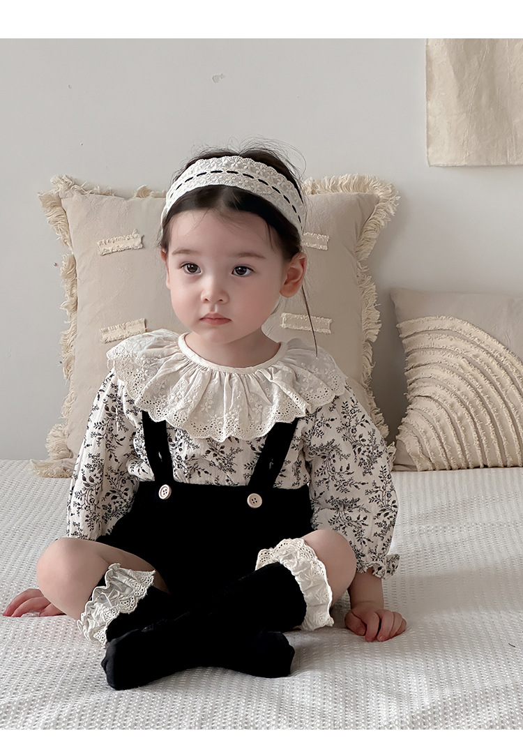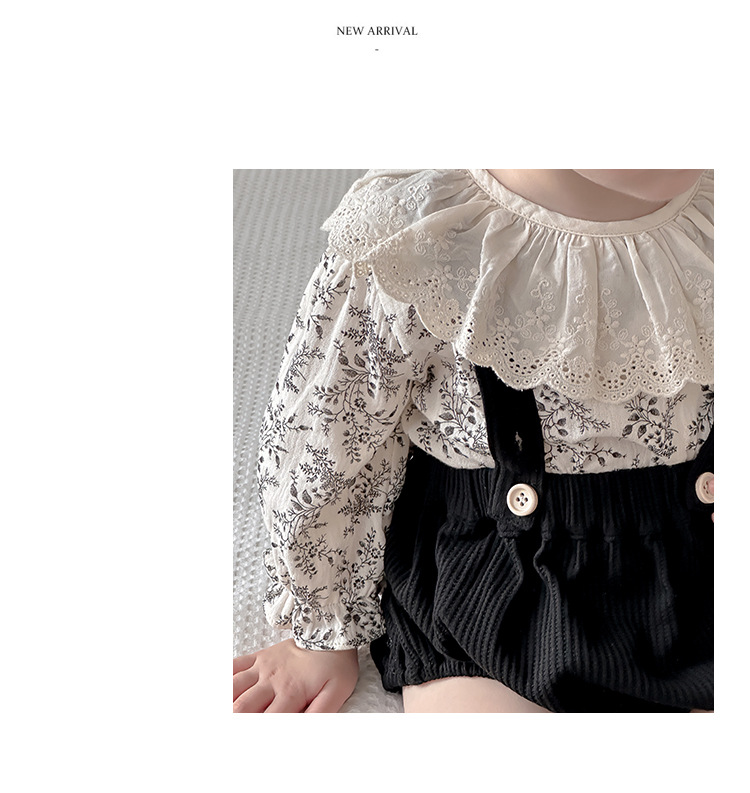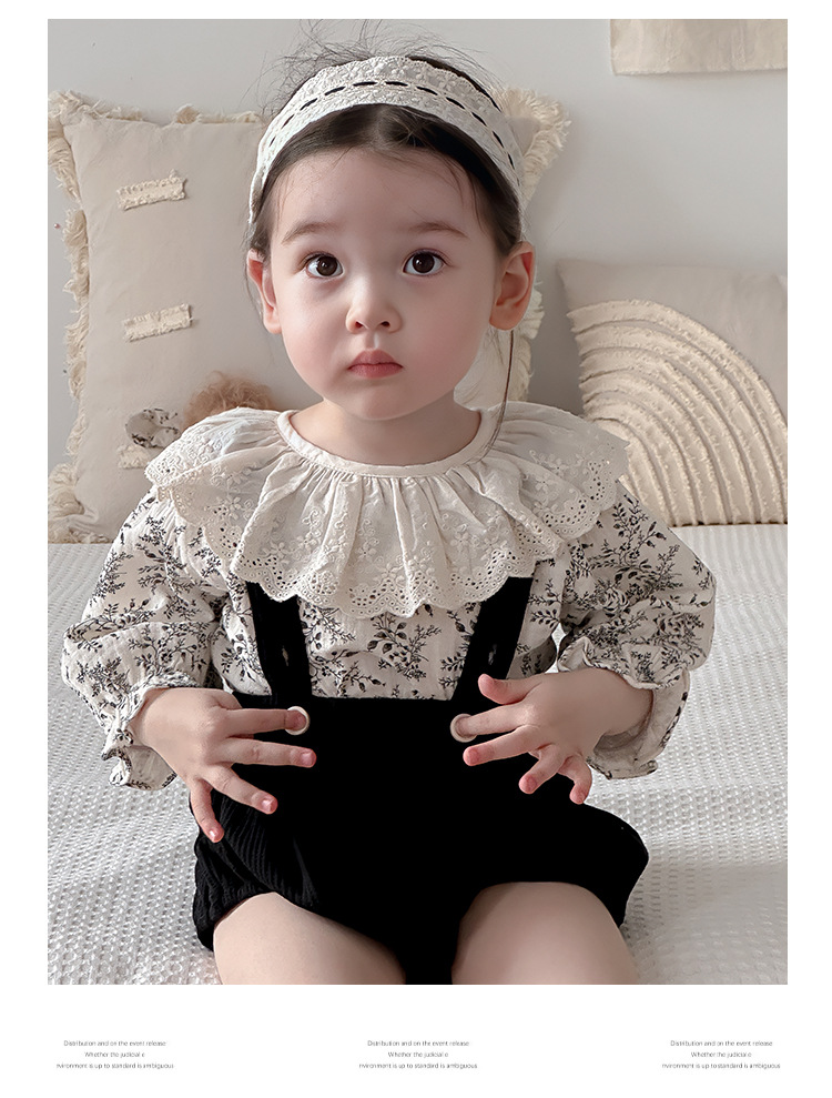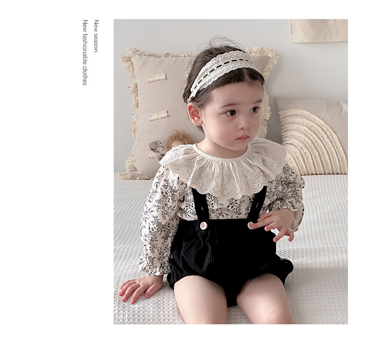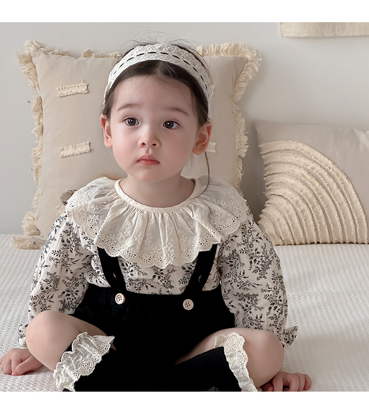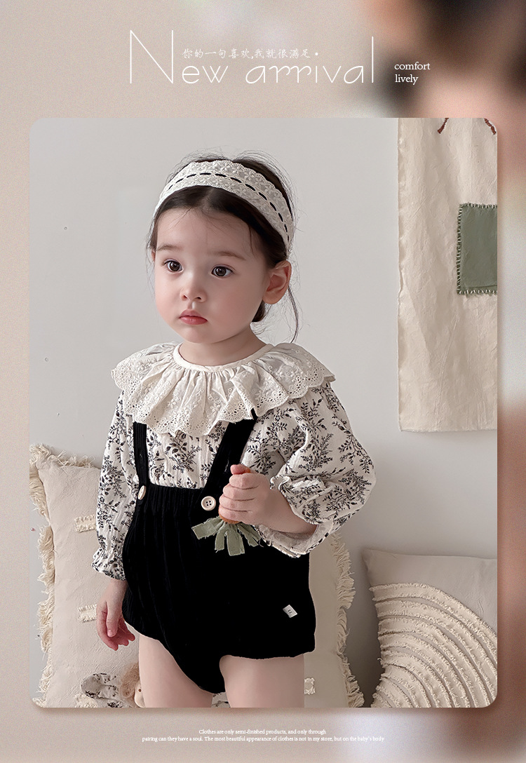 Dianxi 아기 정장 봄과 가을 새로운 스타일 아기 소녀 레이스 달콤하고 세련된 꽃 탑 소녀 작업복 정장스토어 가기