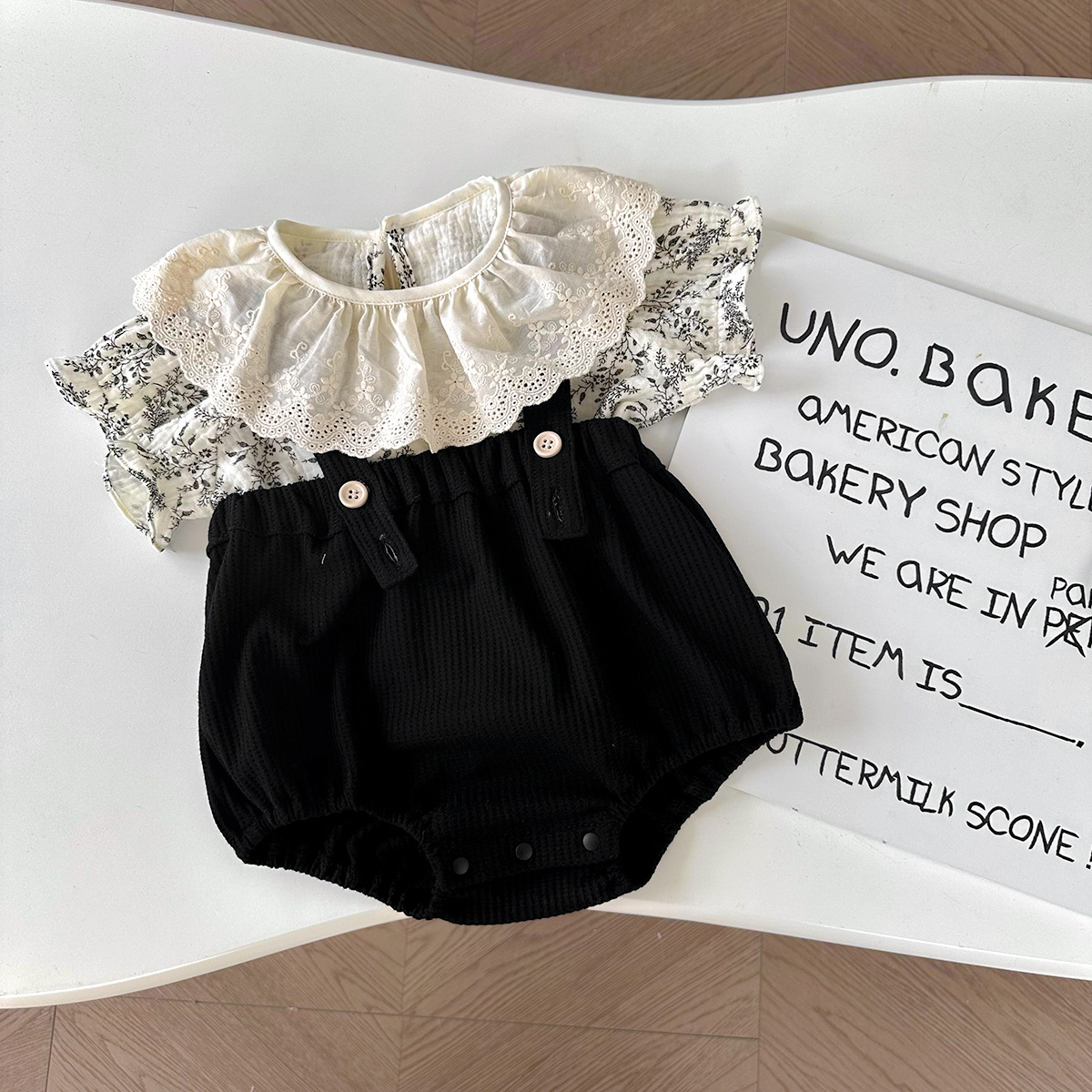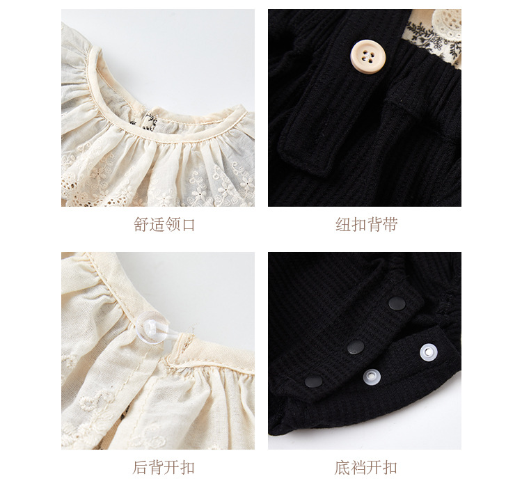 Dianxi 아기 정장 봄과 가을 새로운 스타일 아기 소녀 레이스 달콤하고 세련된 꽃 탑 소녀 작업복 정장