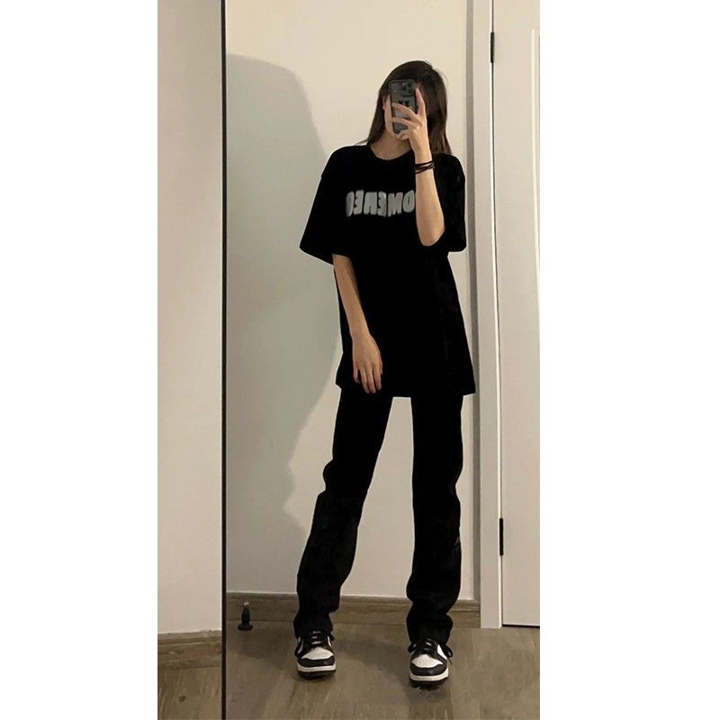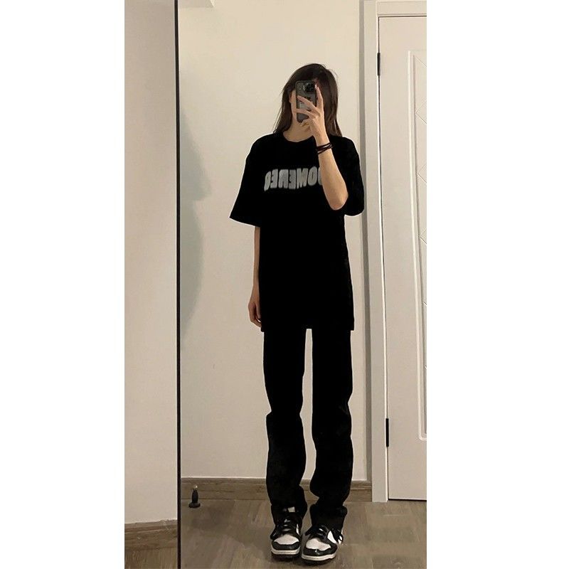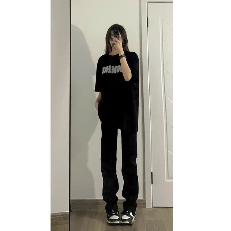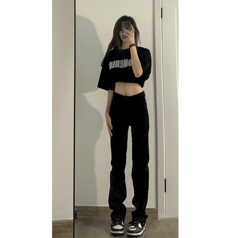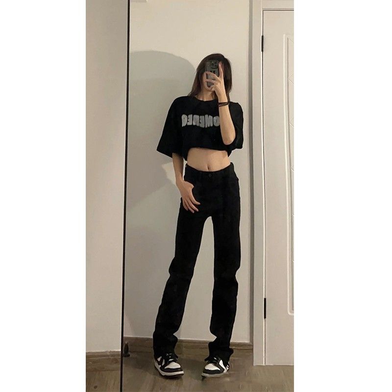유럽과 미국의 디자인 센스 슬림 블랙 청바지 여성용 스파이스 걸스 키가 큰 긴 스트레이트 튜브 높은 허리 연기 파이프 걸레 바지스토어 가기
