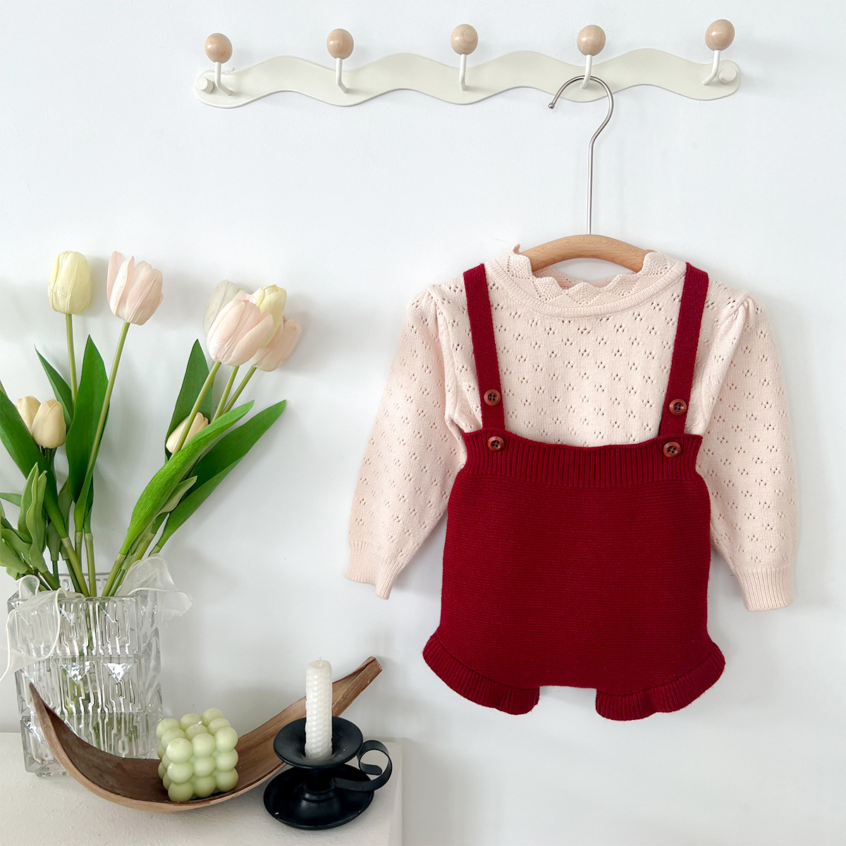여아 의류, 가을 스타일 상의, 니트 멜빵바지 투피스 세트, 가을 아기옷, 귀여운 스웨터 세트