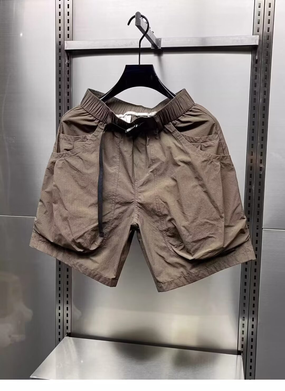 여름 느슨한 일본 스타일 기능성 툴링 반바지 남성용 루즈 스트레이트 솔리드 컬러 올 매치 캐주얼 바지 비치 바지