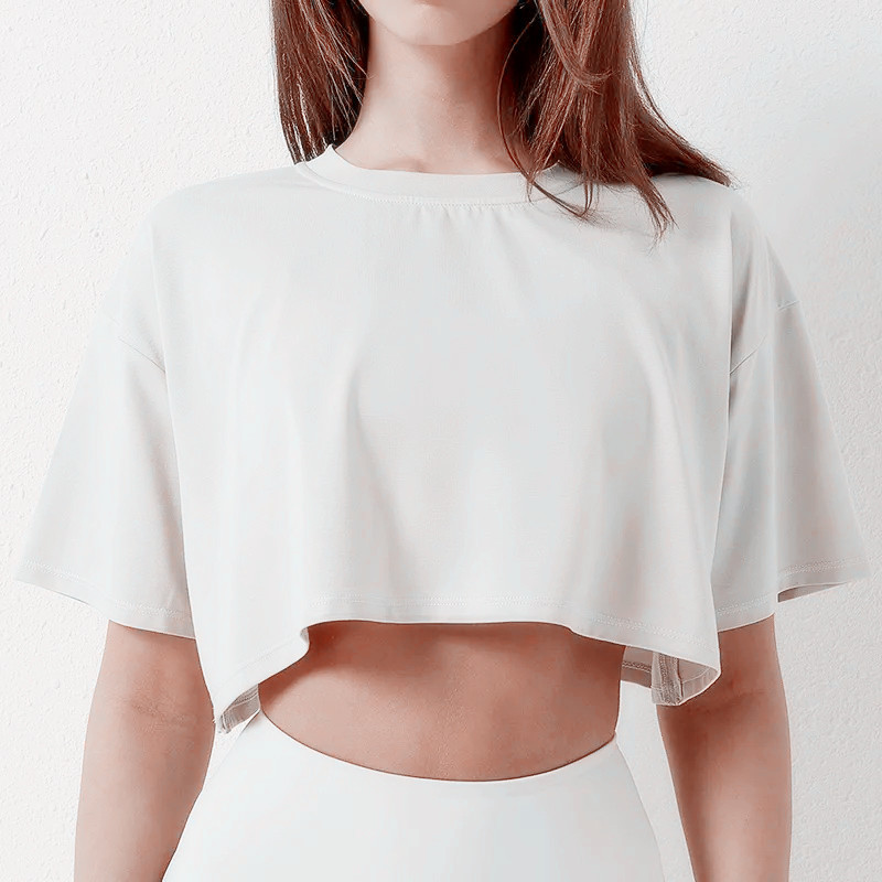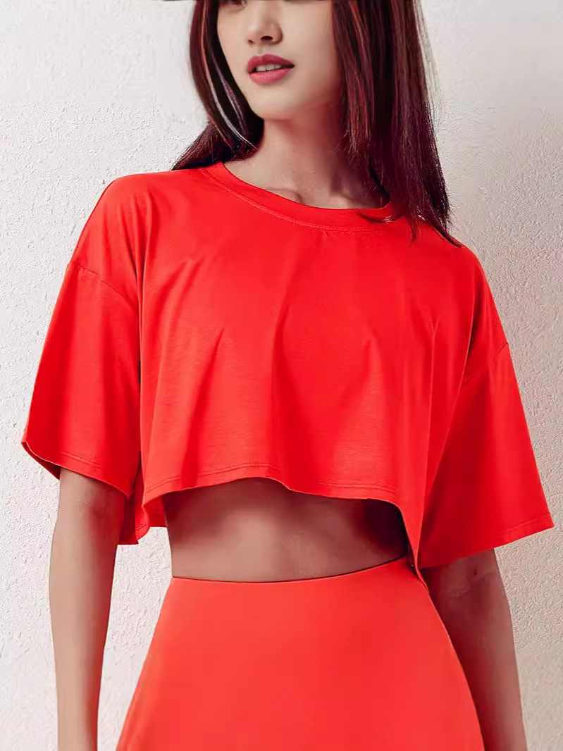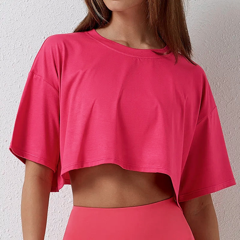 국경 간 대외 무역 유럽과 미국 여름 새로운 단색 둥근 목 아마존 레저 스포츠 짧은 작물 최고 티셔츠 여성