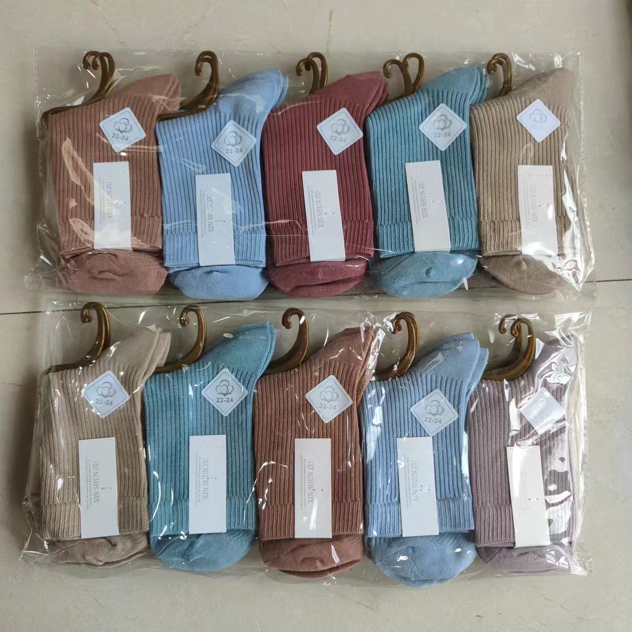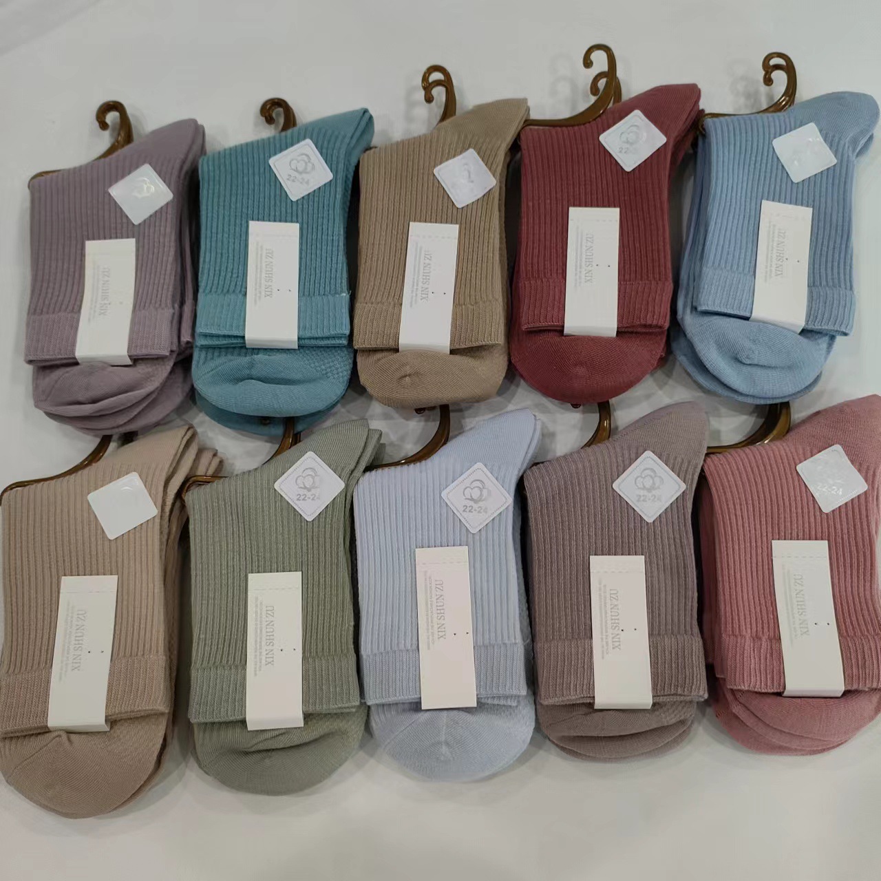 런닝 볼륨 남성과 여성의 색면 모조 더블 바늘 양말 가을 및 겨울 단색 캐주얼 비즈니스 캔디 컬러 남성과 여성의 면 양말스토어 가기