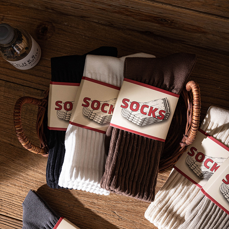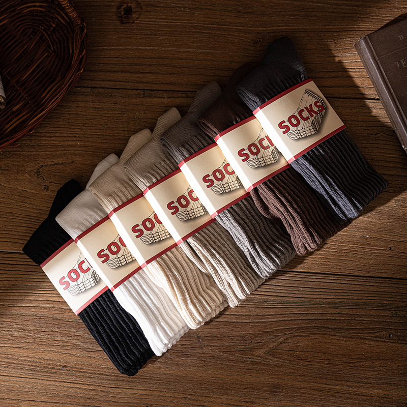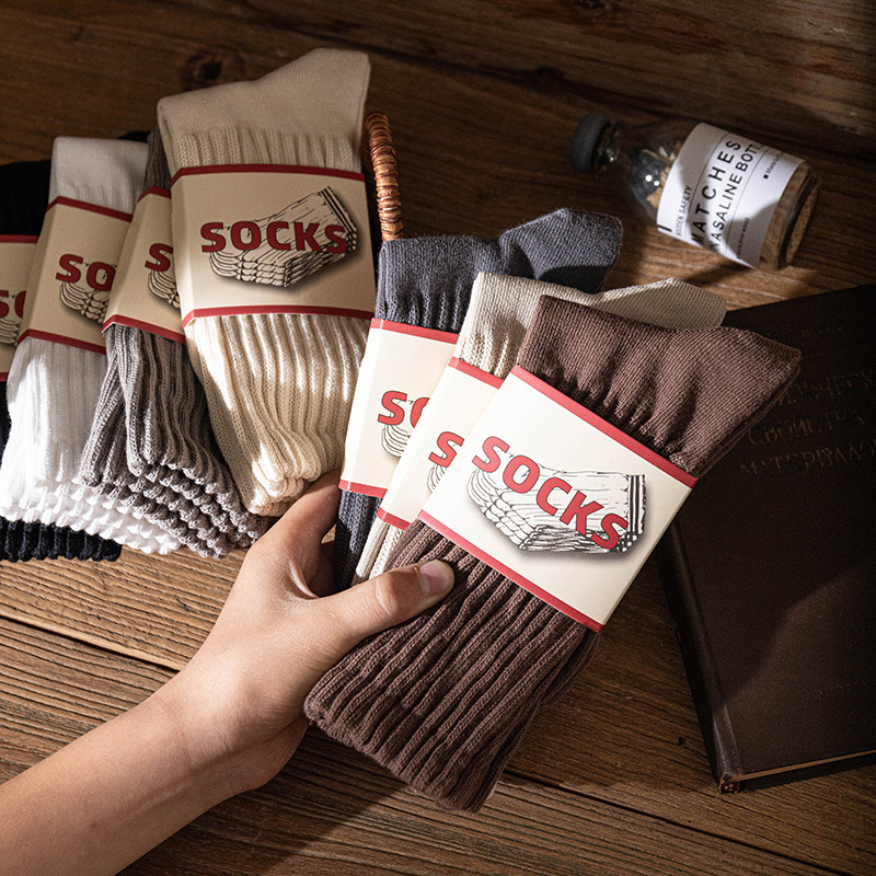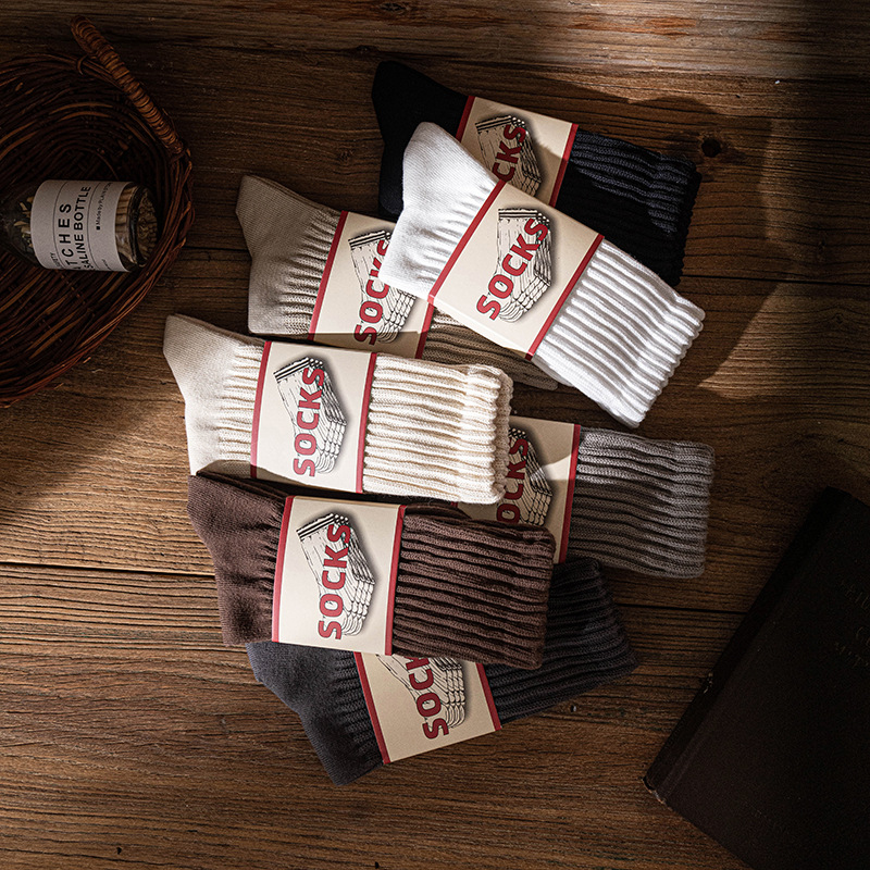 쌓인 양말 아미 카키 양말 높은 배럴 일본 스타일 두꺼운 라인 남성과 여성의 중간 배럴 단색 빈티지 두꺼운 바늘 아메리칸 스타일 스타킹 남성용스토어 가기