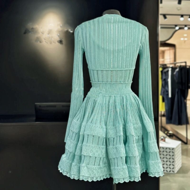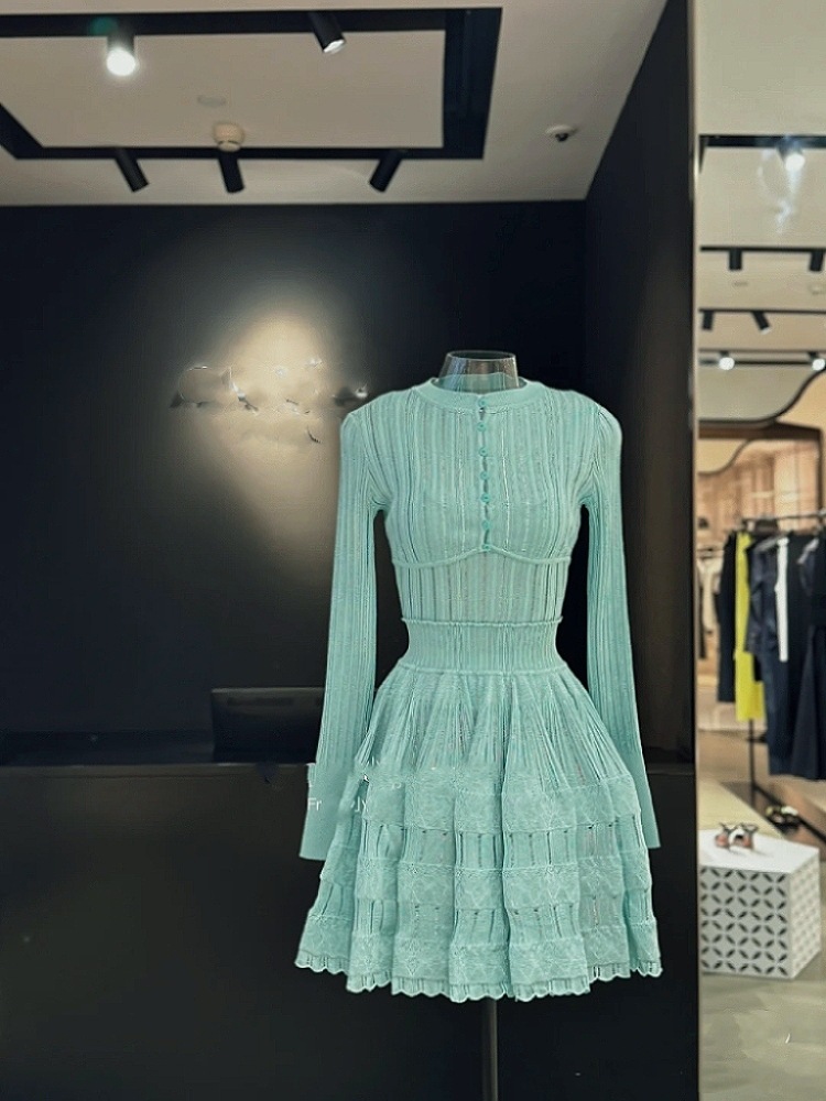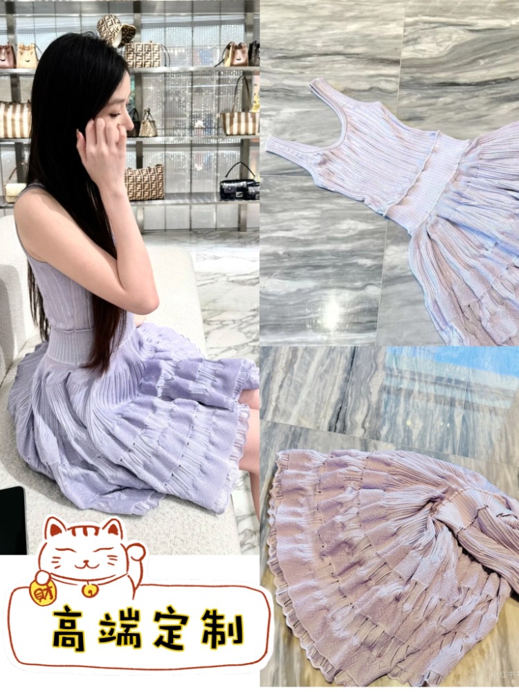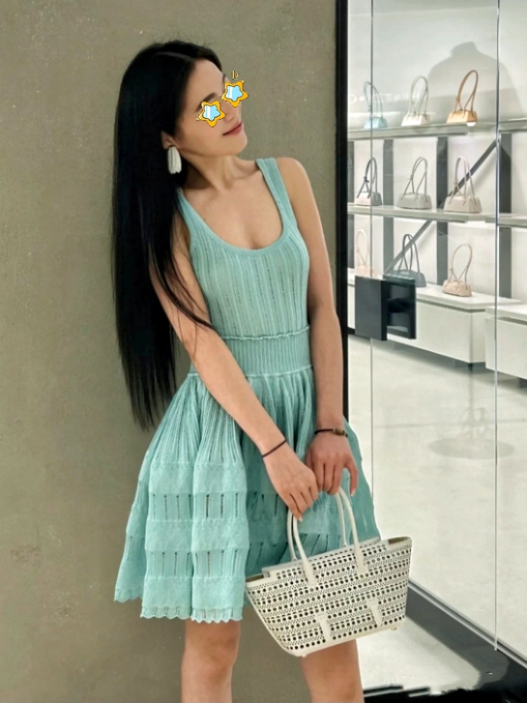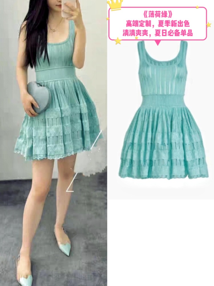높은 세트 2024 여름 새로운 민트 녹색 민소매 조끼 스커트 중공 허리 니트 멋진 원피스 스타스토어 가기