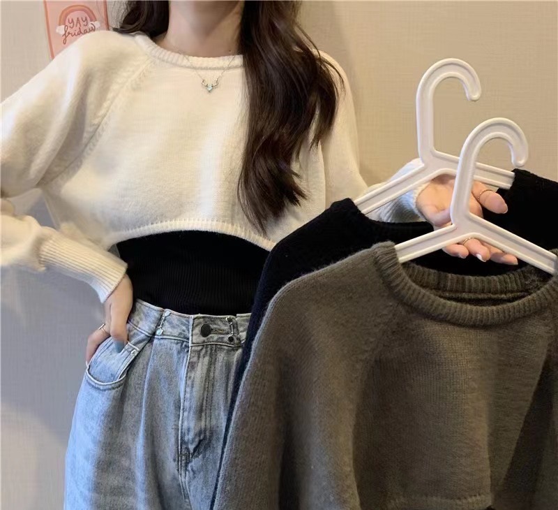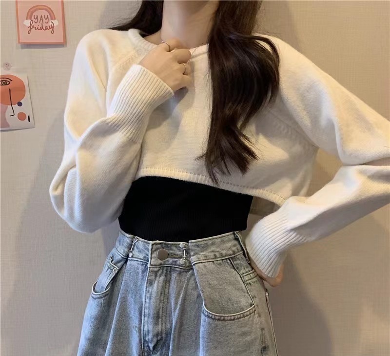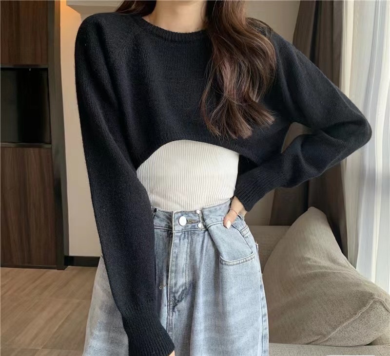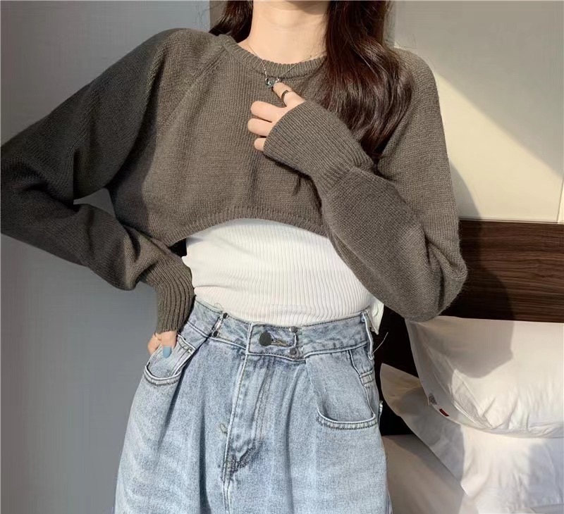 봄 가을 신상 캐주얼 스타일 풀오버 니트웨어 하이웨이스트 반팔 긴팔 루즈핏 다용도 여성 상의