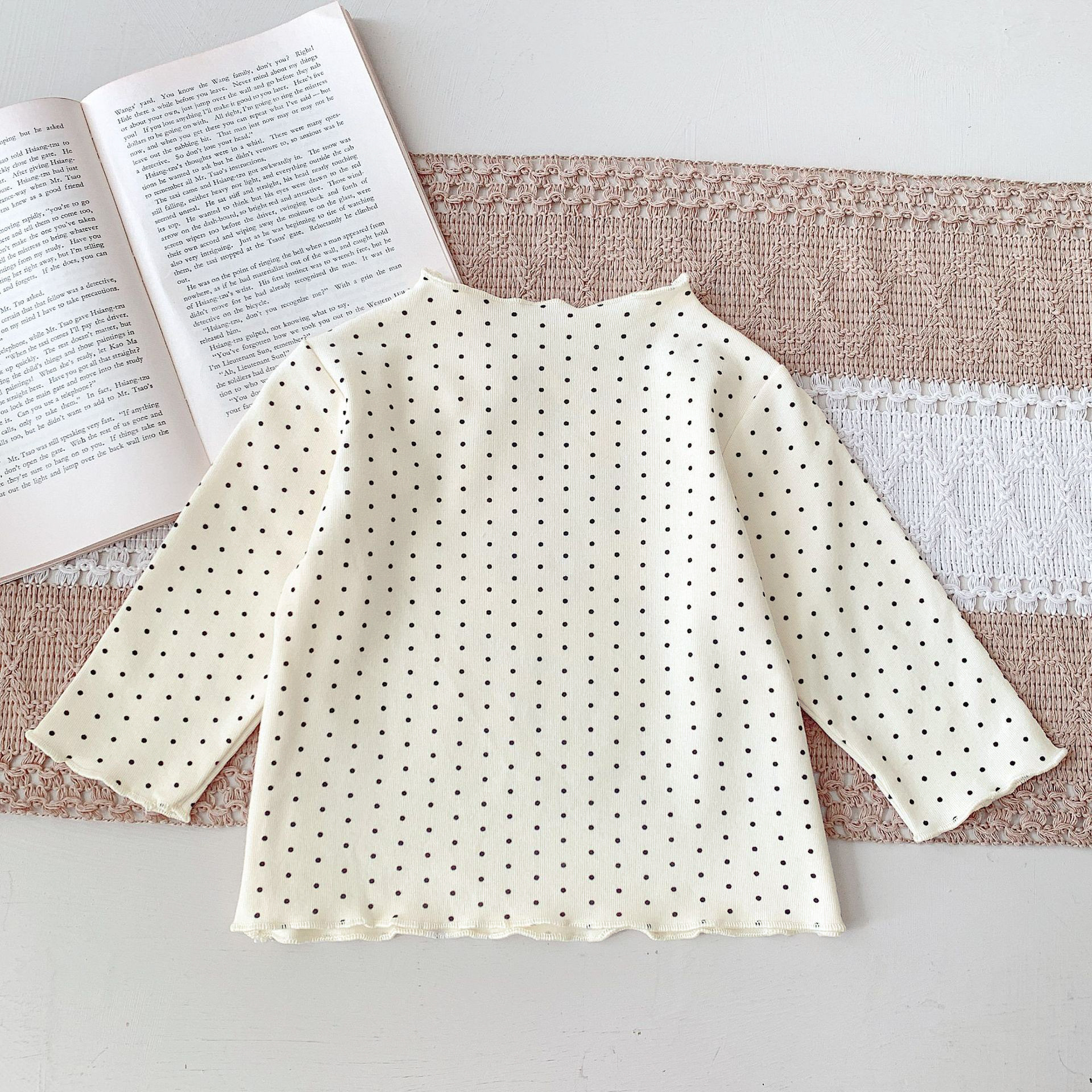 Ins Autumn New Girls 하프 하이 칼라 이어베이스 셔츠 스타일리스트 아기 소녀 꽃 얇은 긴 소매 탑
