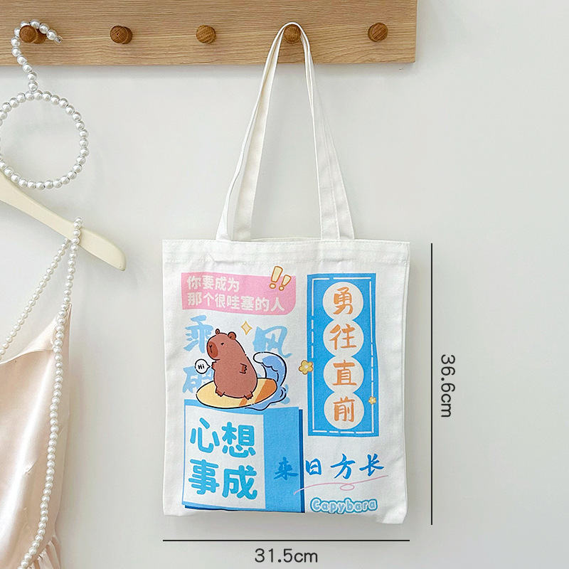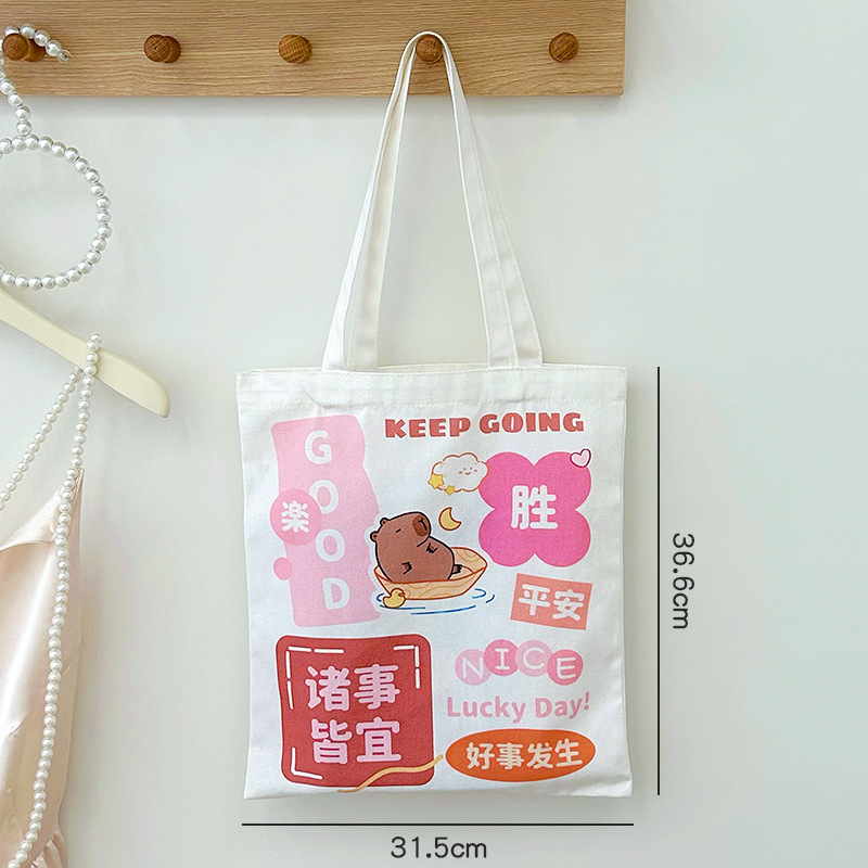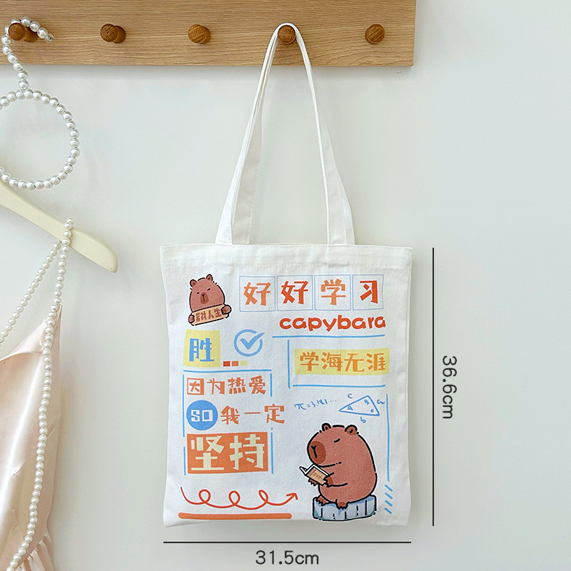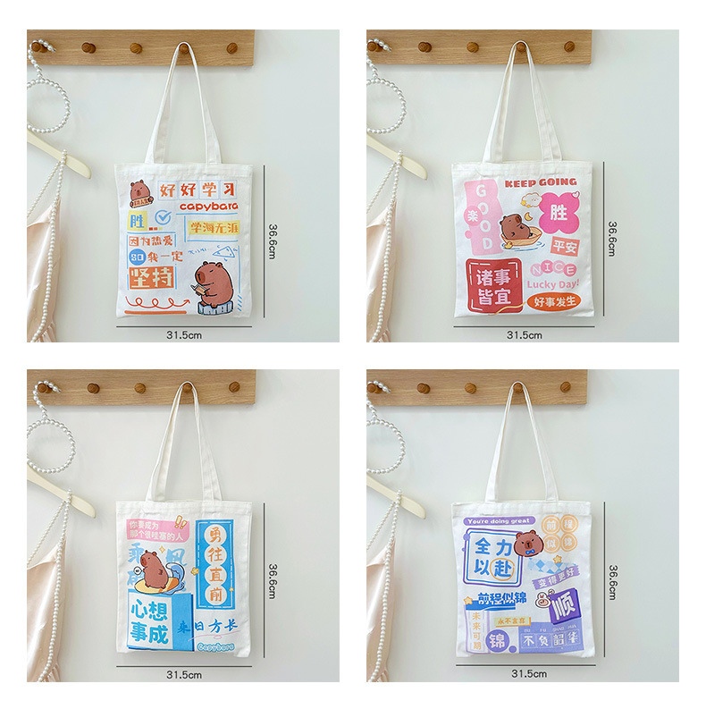카피 발라 튜토리얼 가방 귀여운 카피 바라 휴대용 숄더백 학생 영감을주는 텍스트 캔버스 가방 문구 보관 가방스토어 가기