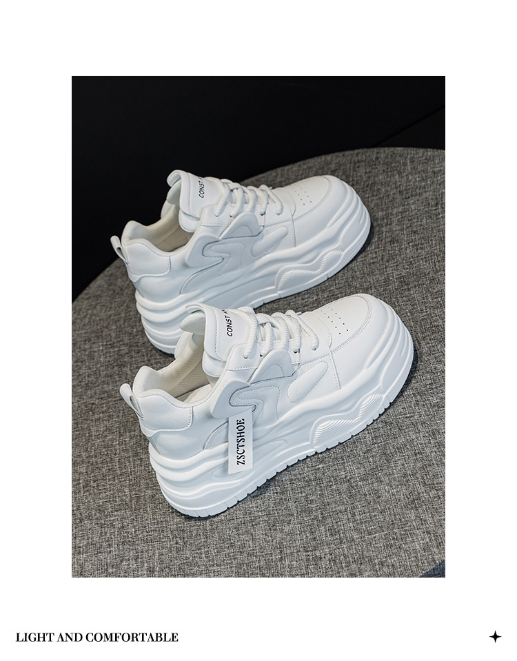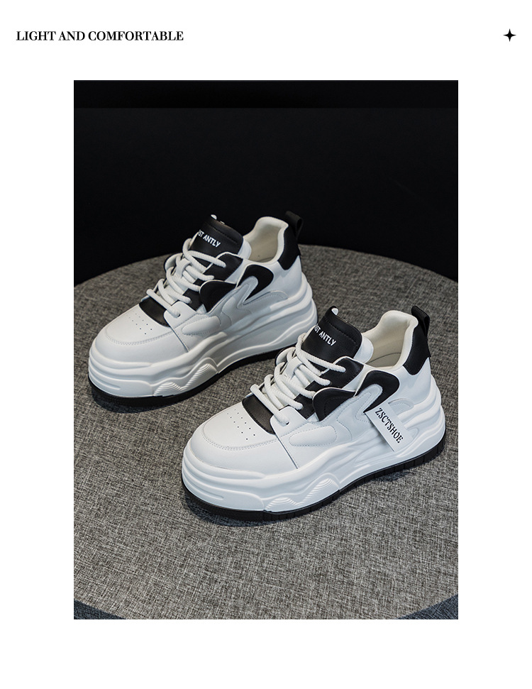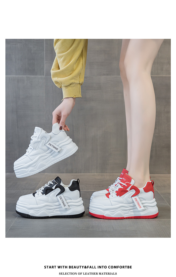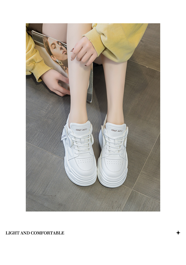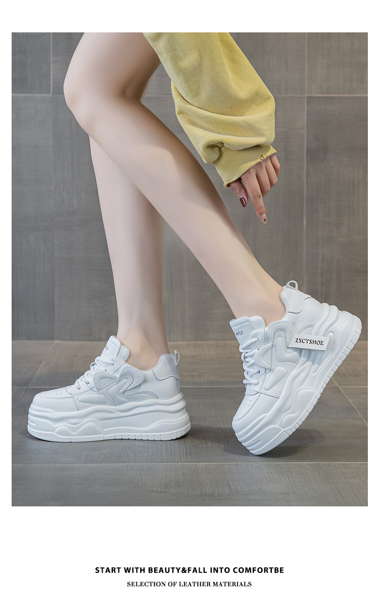 여성용 정품 가죽 캐주얼 신발, 2025 봄 가을 신상 스타일, 플랫폼 두꺼운 밑창, 작은 사이즈, 대학 스타일, 인터넷 연예인 화이트 슈즈