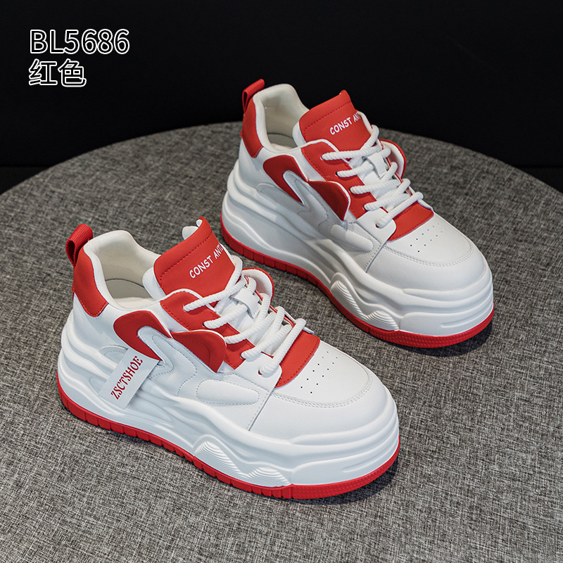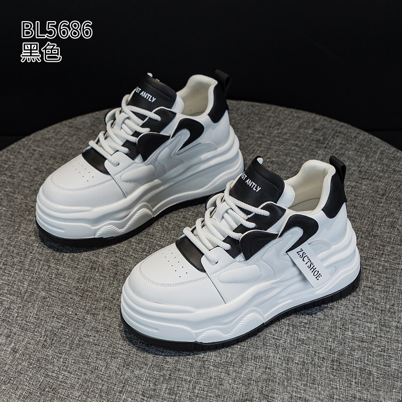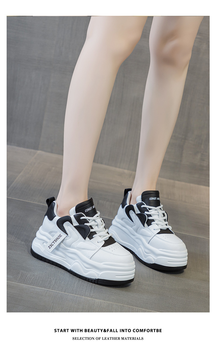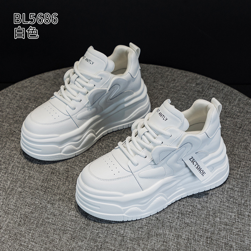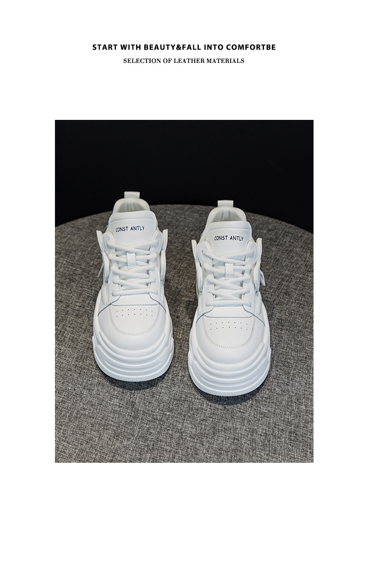 여성용 정품 가죽 캐주얼 신발, 2025 봄 가을 신상 스타일, 플랫폼 두꺼운 밑창, 작은 사이즈, 대학 스타일, 인터넷 연예인 화이트 슈즈스토어 가기