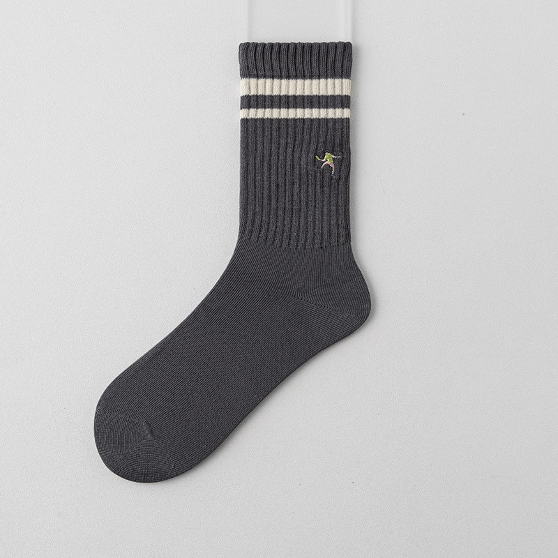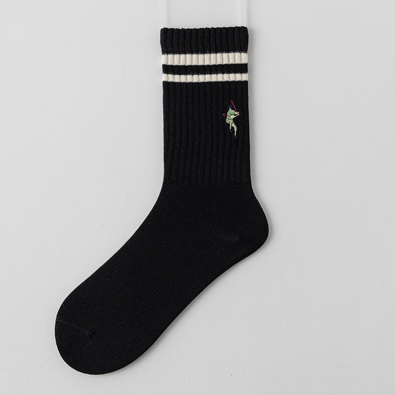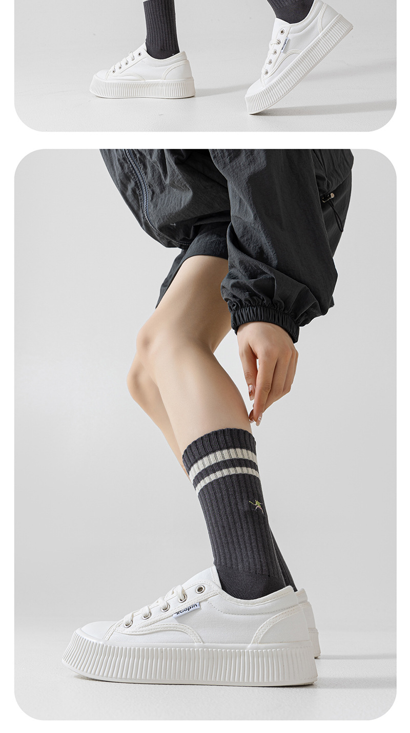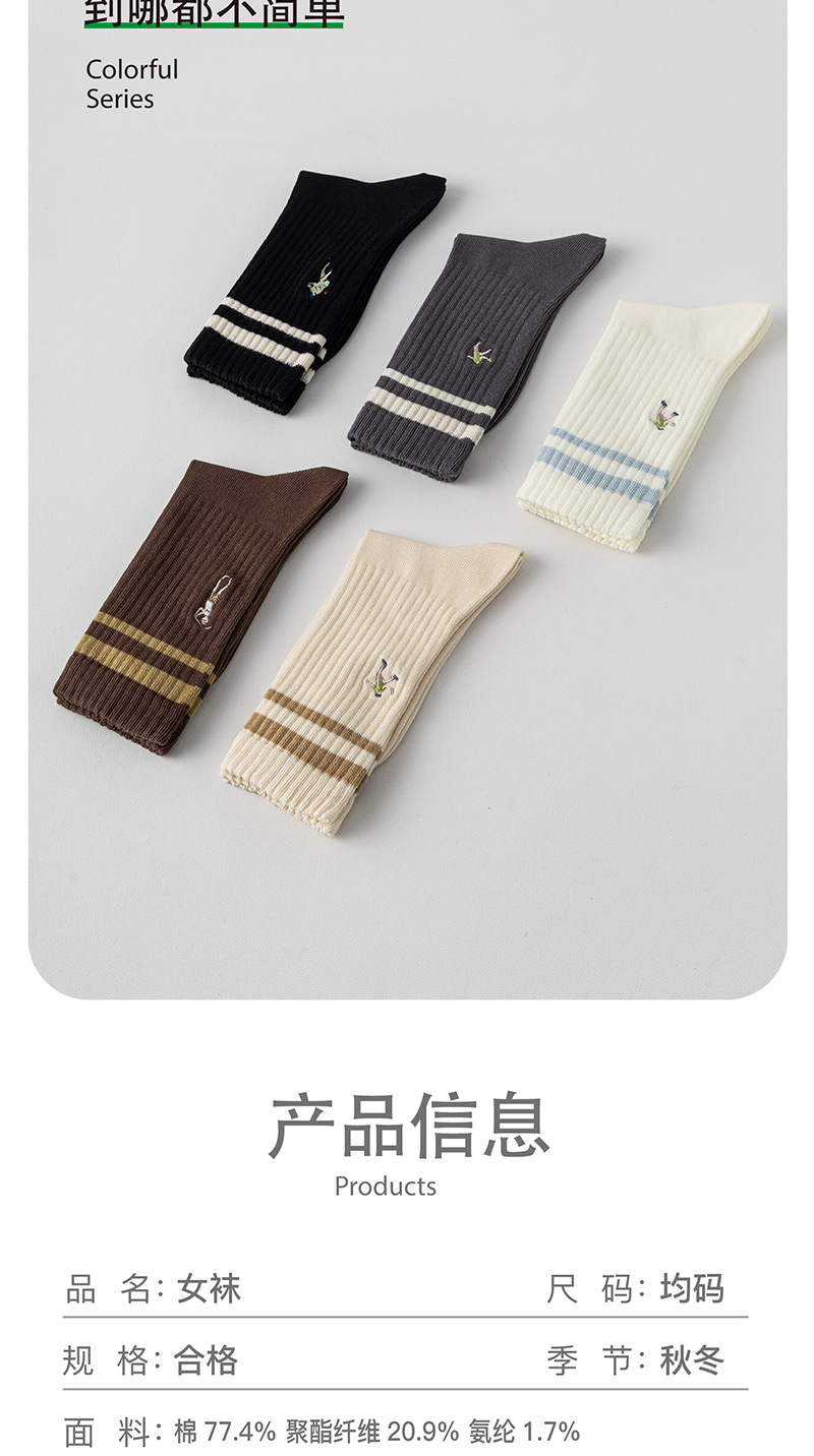 가을과 겨울을위한 여성용 안티 필링 코튼 양말 일본식 하이 고무 스트랜드 수직 줄무늬 캐주얼 코튼 양말 자수 대학 패션 양말