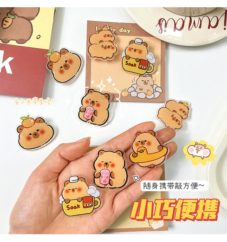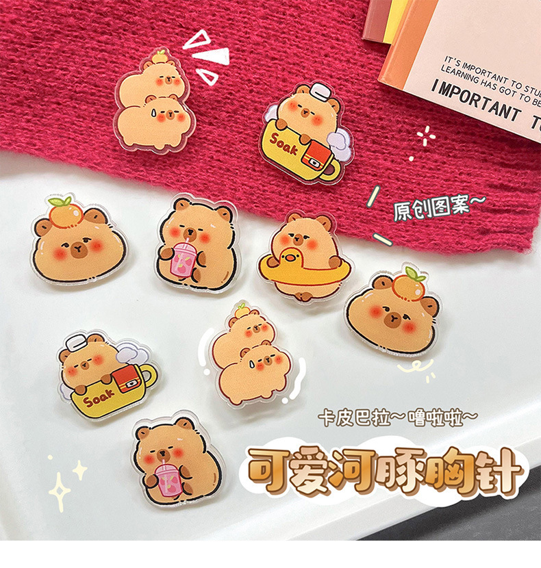 카피 발라 브로치 장식 핀 학생 귀여운 카피 바라 유방 아크릴 가방 연필 가방 액세서리스토어 가기