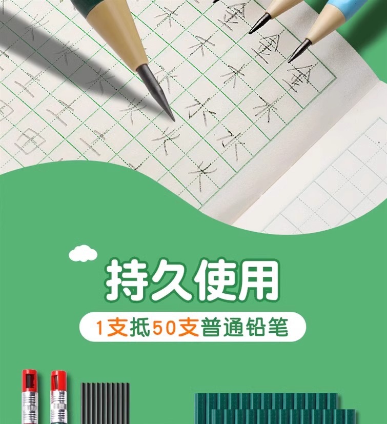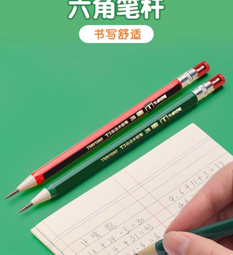 2.0 초등학생을위한 자동 연필 두꺼운 코어 리필 리필 리필 2b 시험 자동 펜 연속 코어 선명 없음 연필