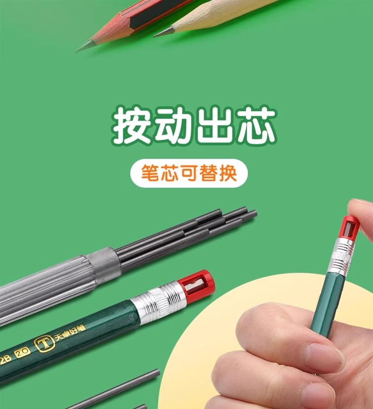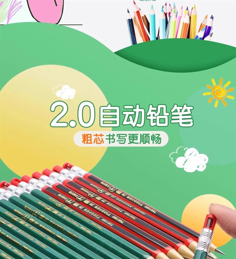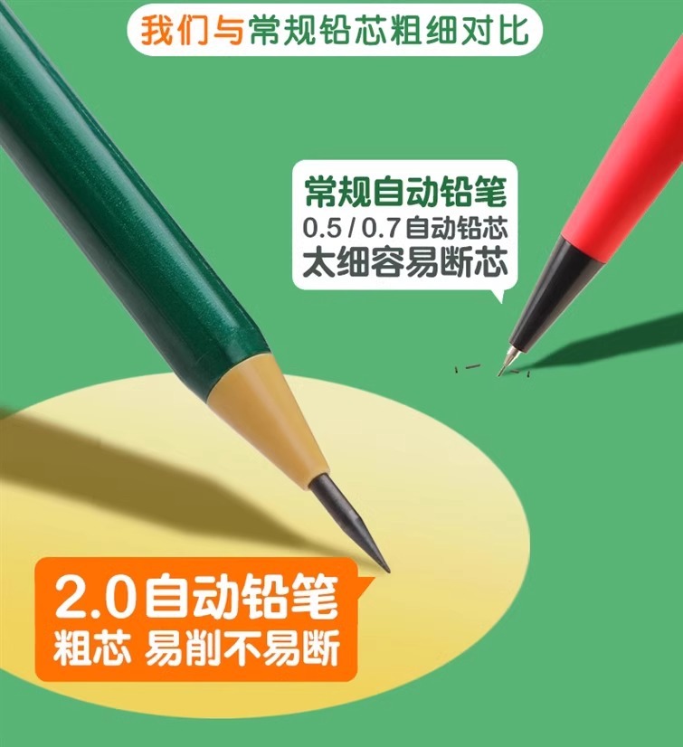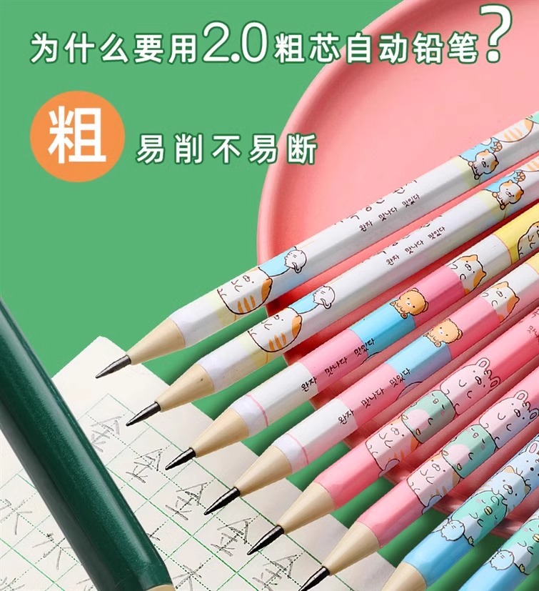 2.0 초등학생을위한 자동 연필 두꺼운 코어 리필 리필 리필 2b 시험 자동 펜 연속 코어 선명 없음 연필스토어 가기