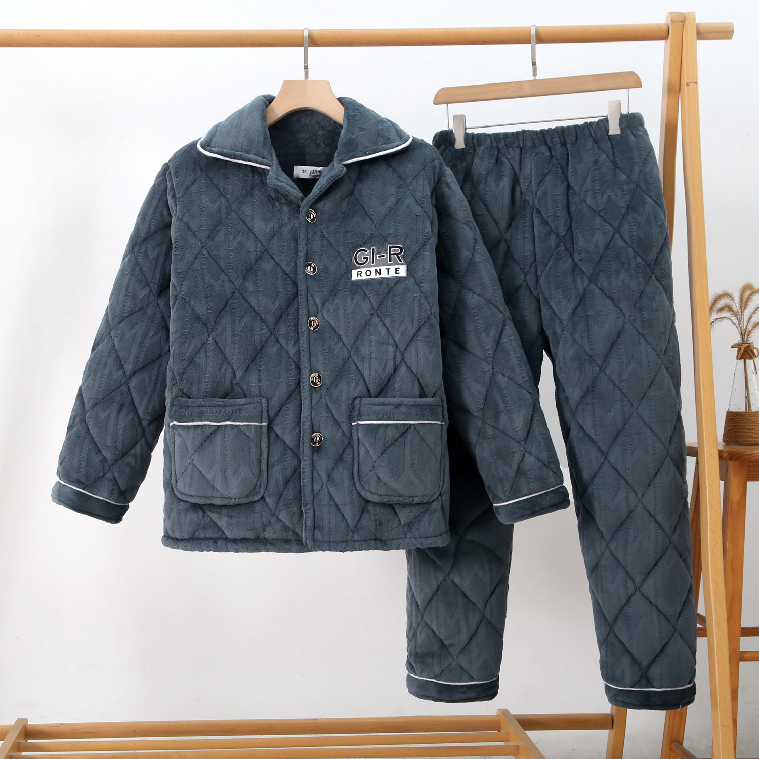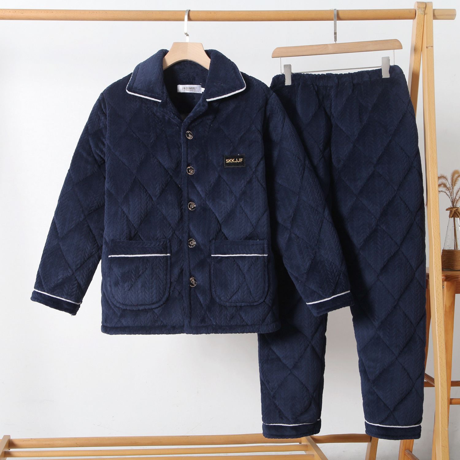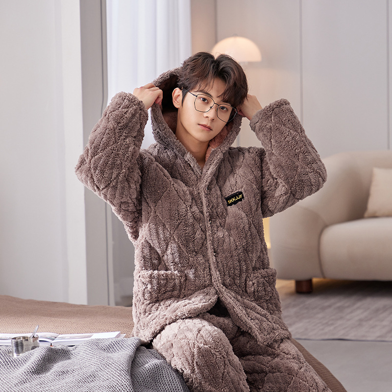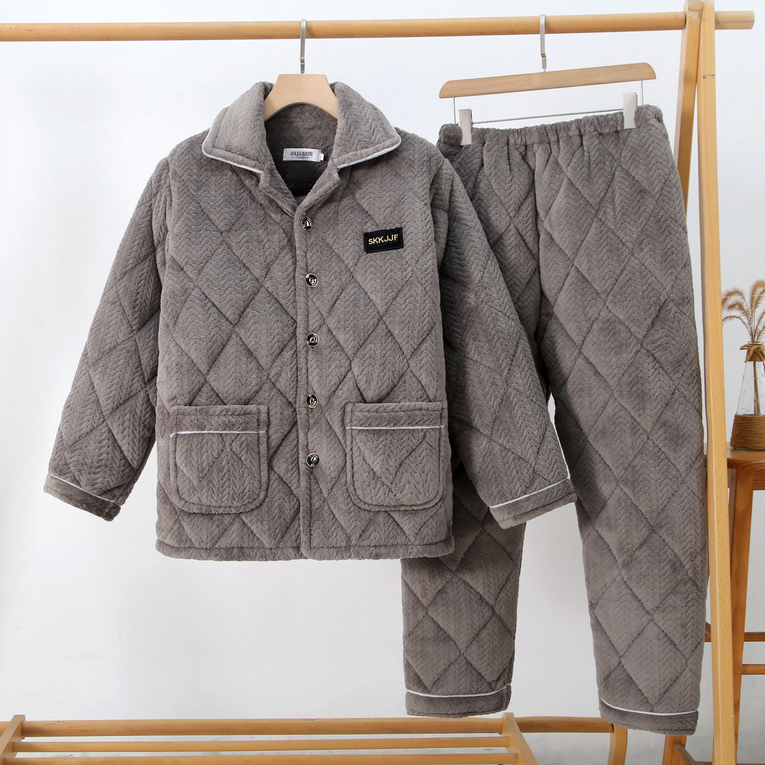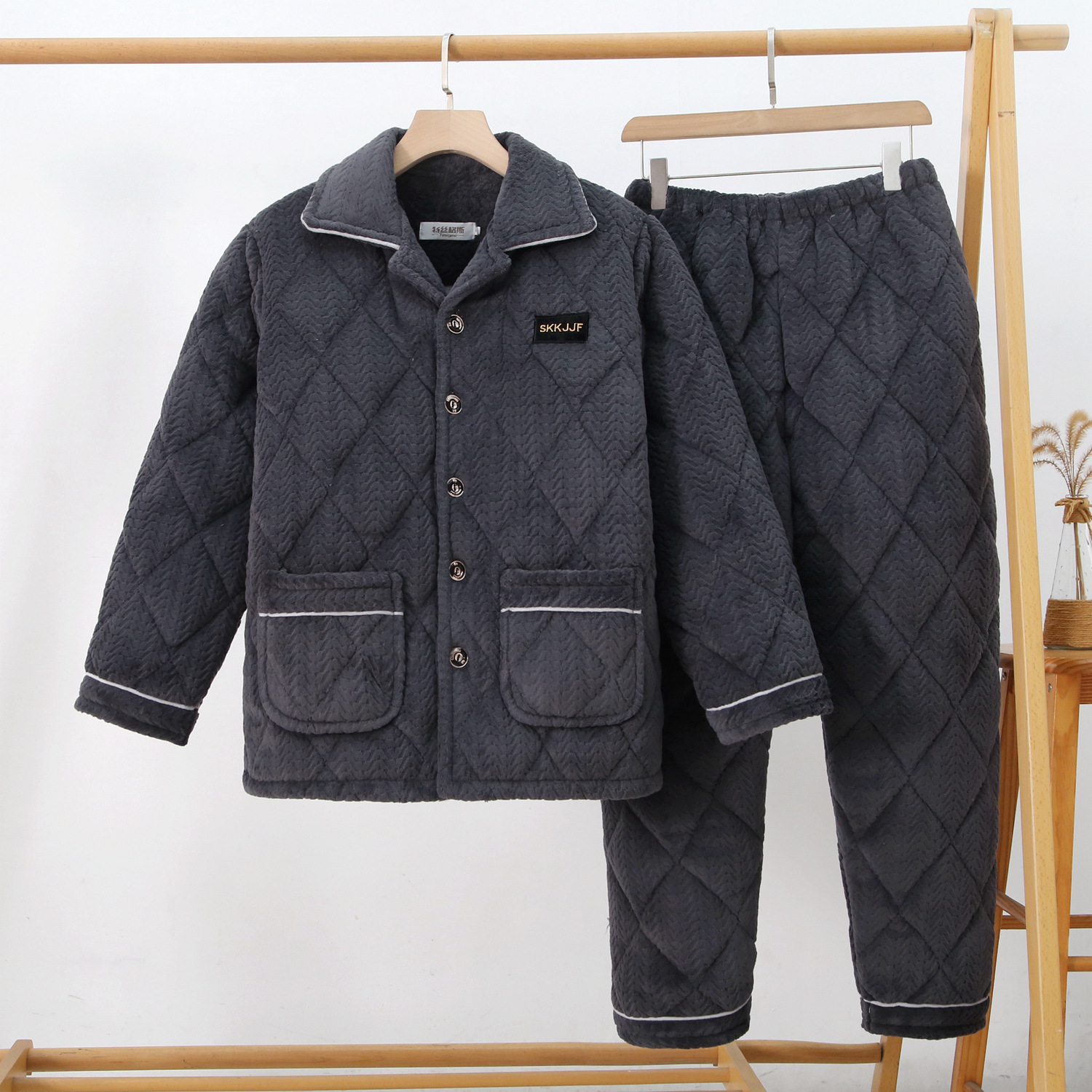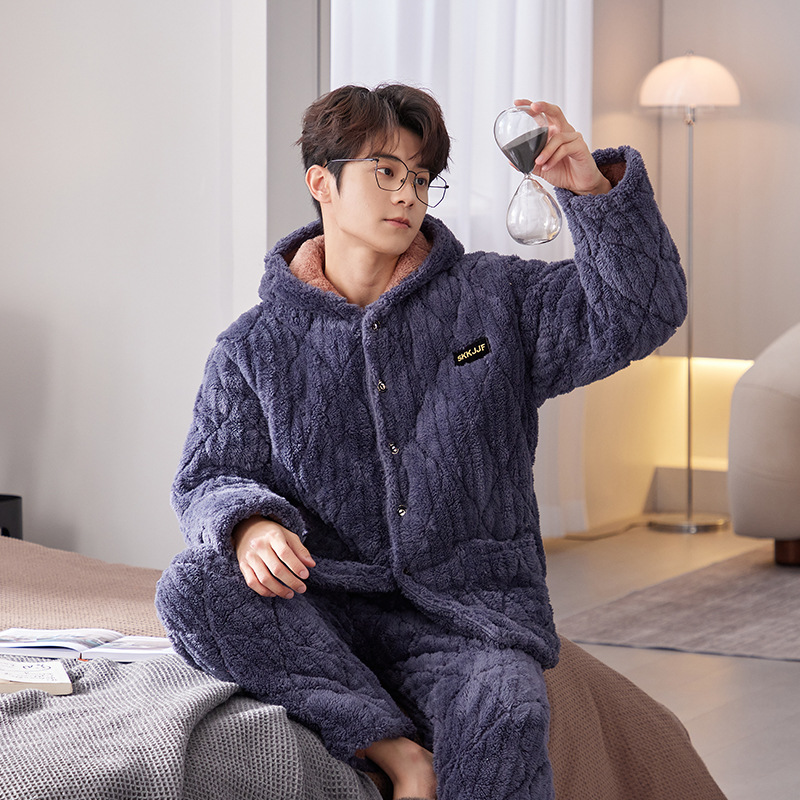겨울철 남성용 맞춤형 잠옷, 두껍고 따뜻한 지퍼, 3겹 누비 산호 벨벳, 대형 아우터웨어, 홈웨어 세트, 스탠드 칼라스토어 가기
