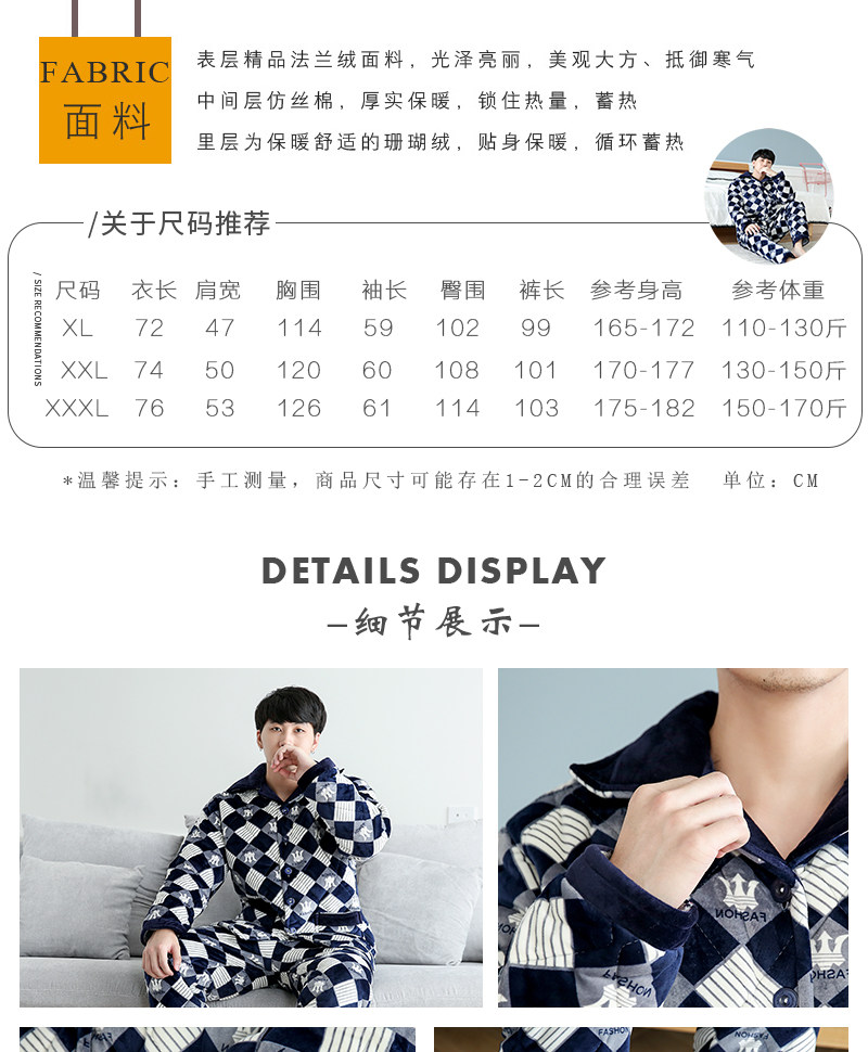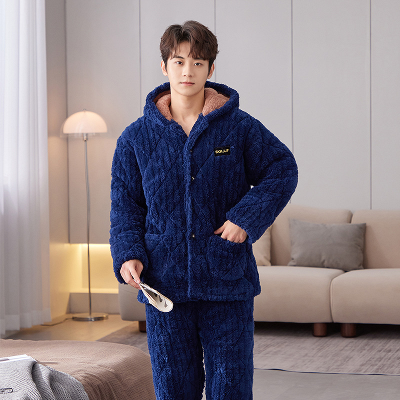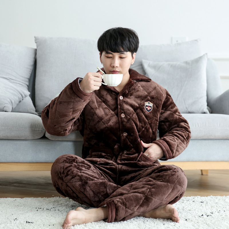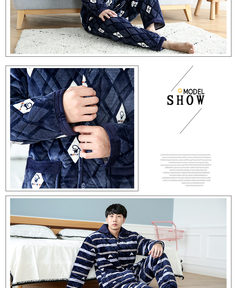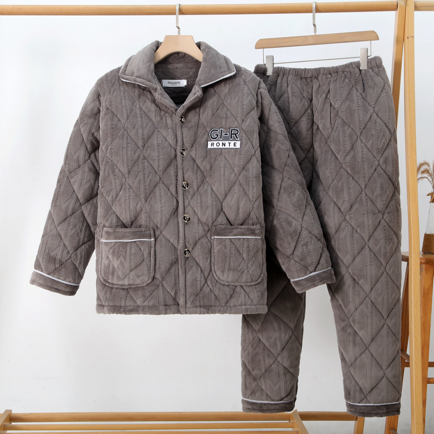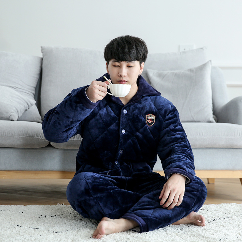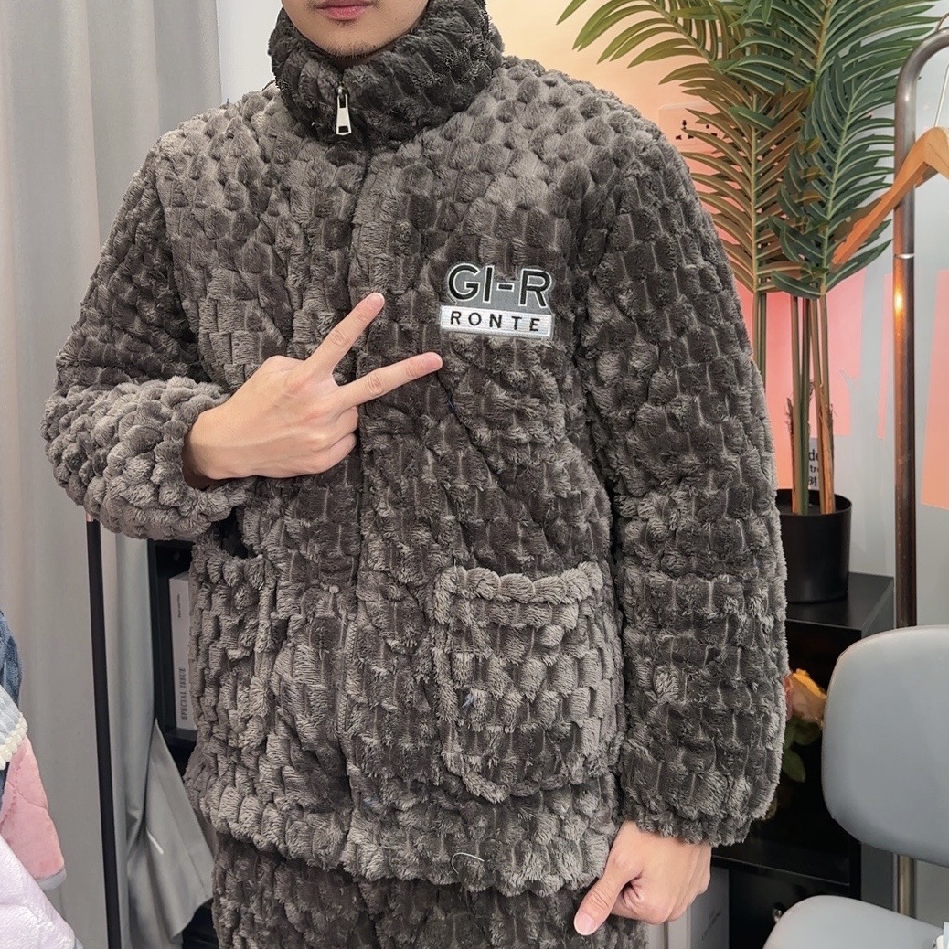 겨울철 남성용 맞춤형 잠옷, 두껍고 따뜻한 지퍼, 3겹 누비 산호 벨벳, 대형 아우터웨어, 홈웨어 세트, 스탠드 칼라스토어 가기