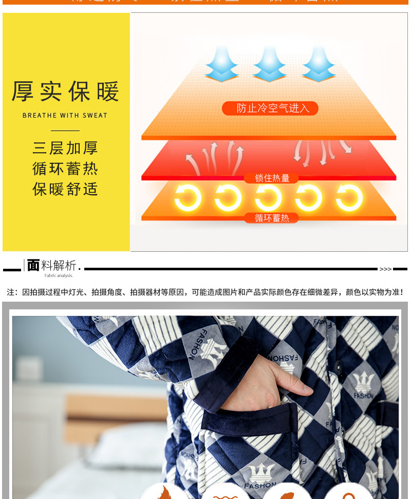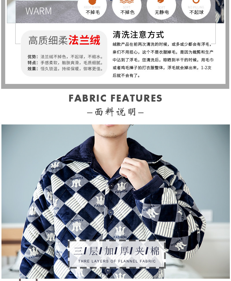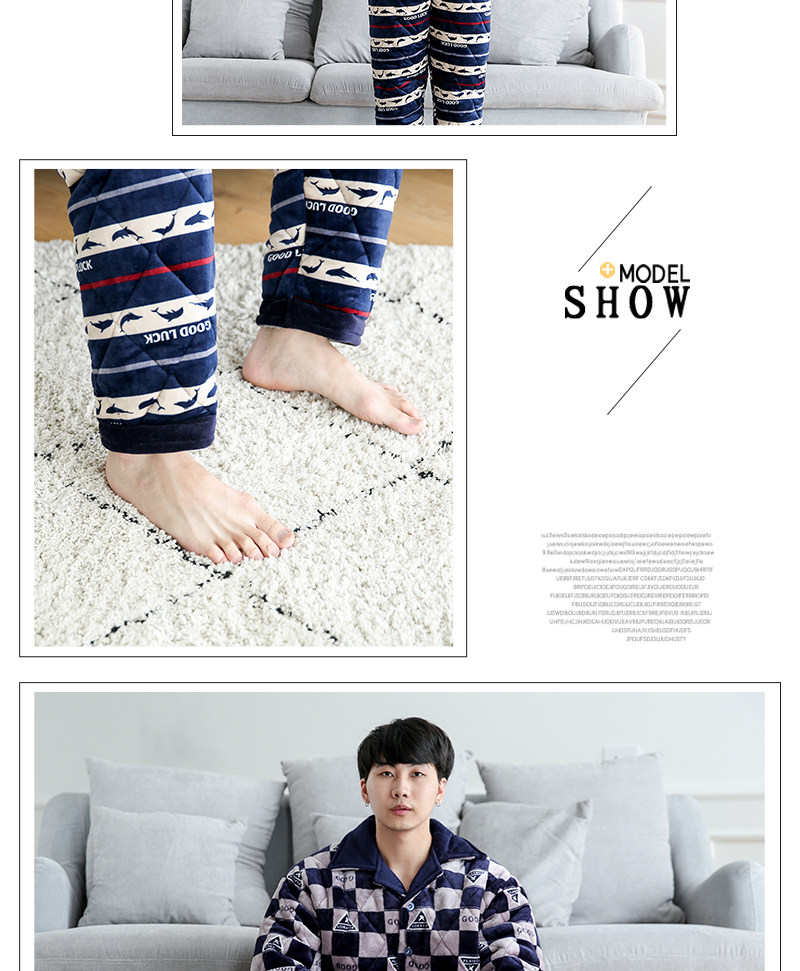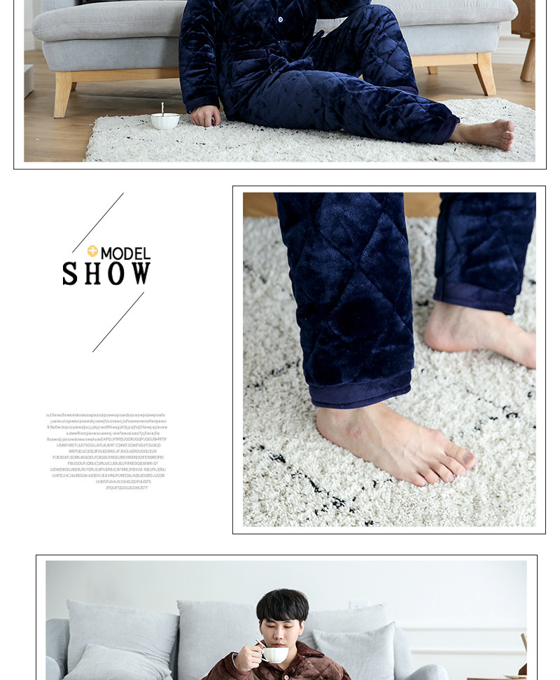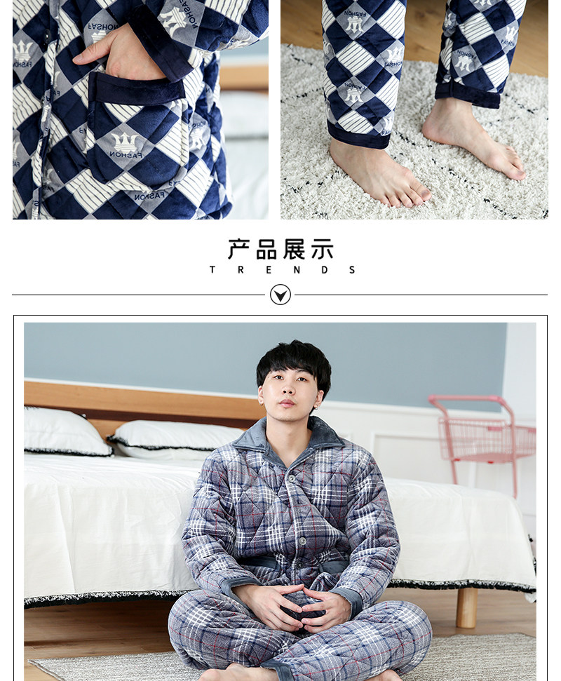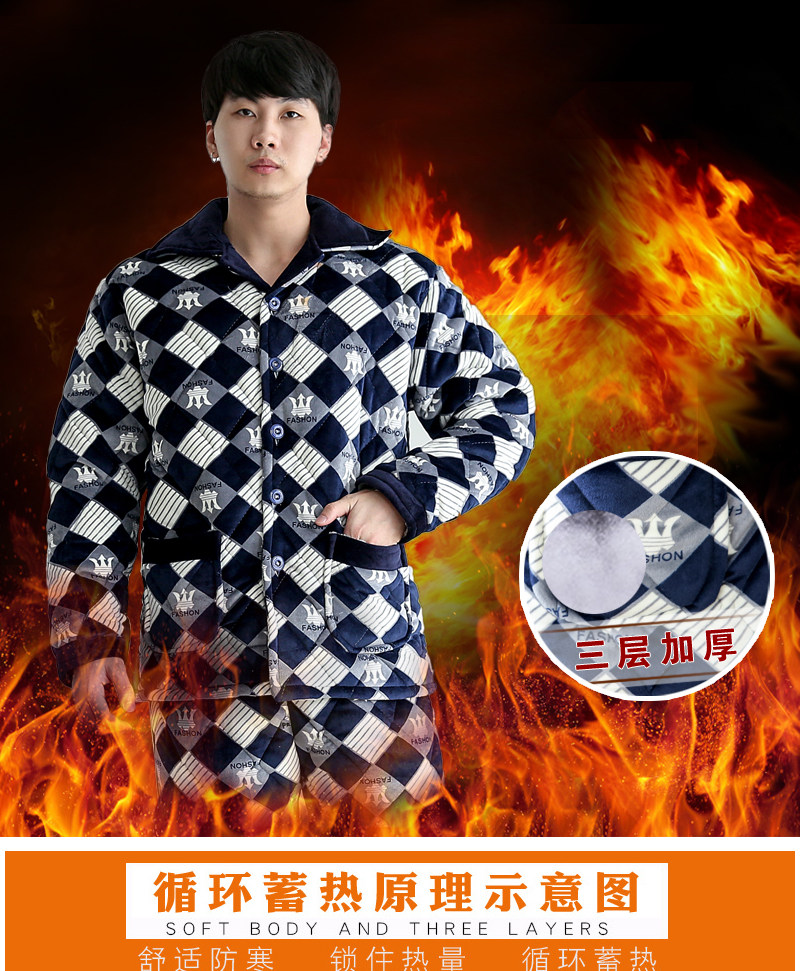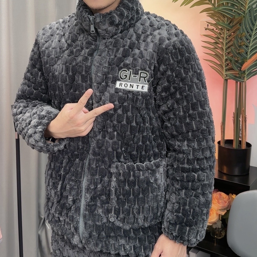 겨울철 남성용 맞춤형 잠옷, 두껍고 따뜻한 지퍼, 3겹 누비 산호 벨벳, 대형 아우터웨어, 홈웨어 세트, 스탠드 칼라스토어 가기