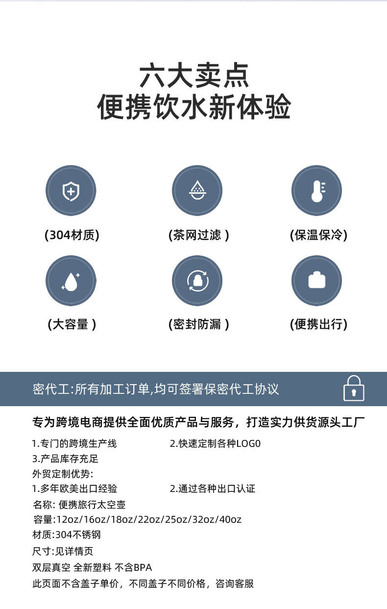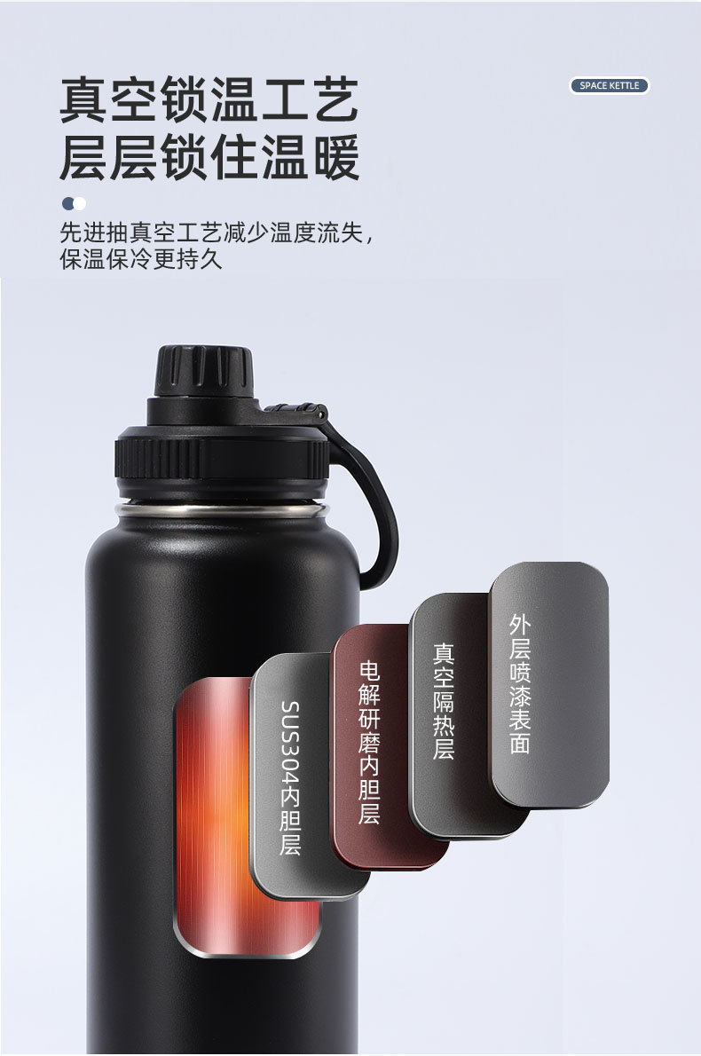 국경 간 재고 스테인리스 공간 냄비 야외 휴대용 손잡이 찻잔 대용량 진공 스포츠 주전자 도매