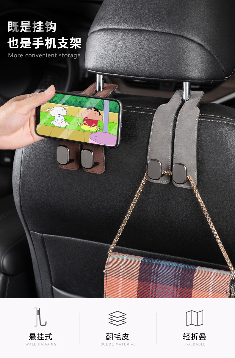 새로운 자동차 시트 백 후크 숨겨진 다기능 스웨이드 가죽 자동차 후크 자동차 더블 헤드 작은 후크스토어 가기