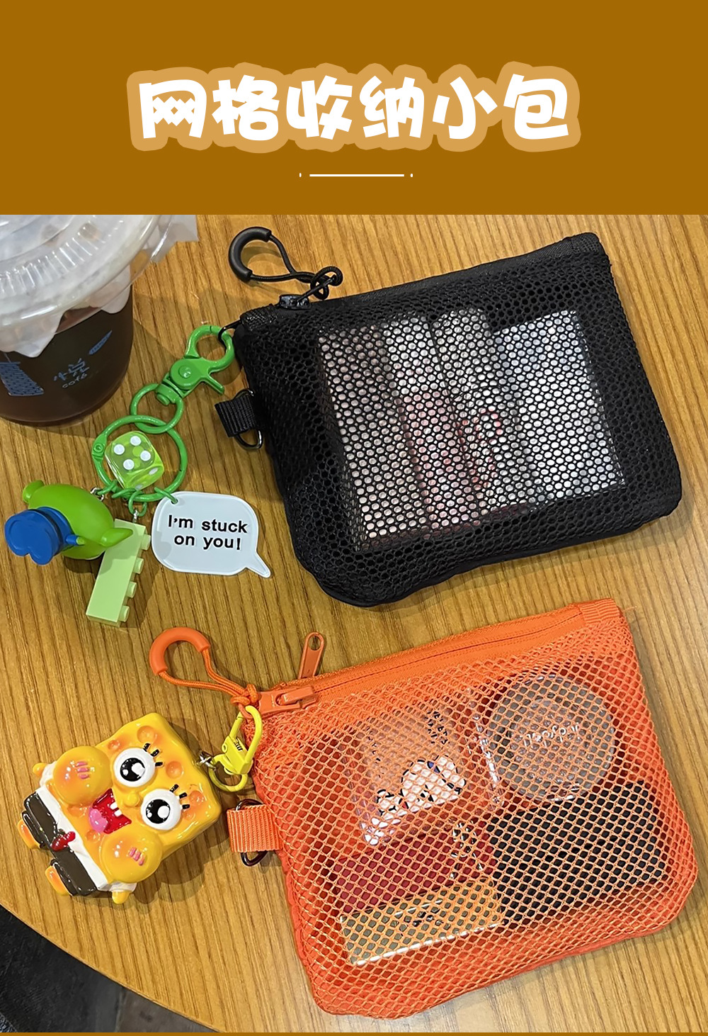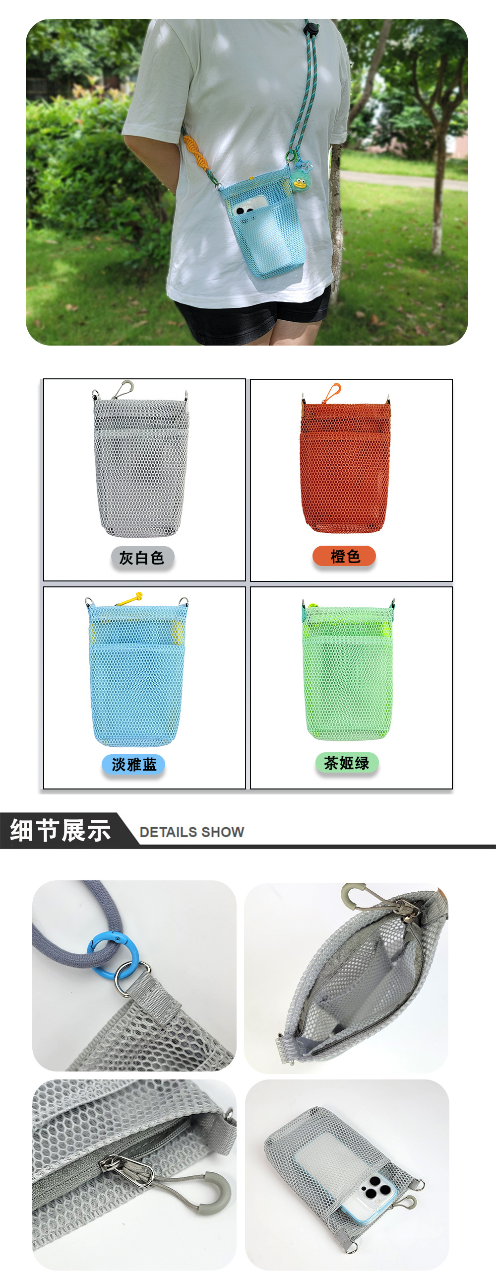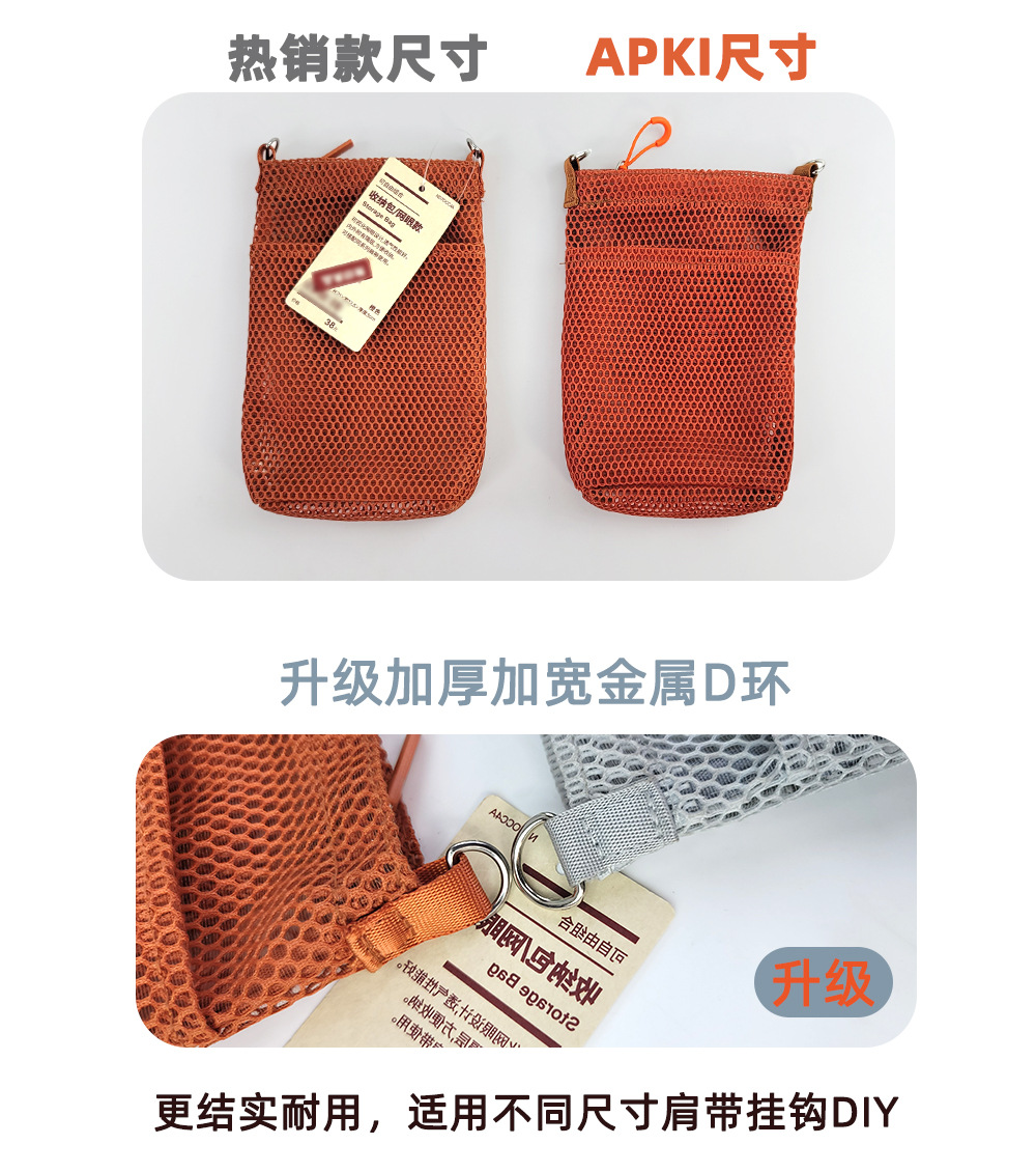 • 휴대폰 가방 메쉬 크로스백(오렌지) + 원클릭 조절 가능한 어깨끈