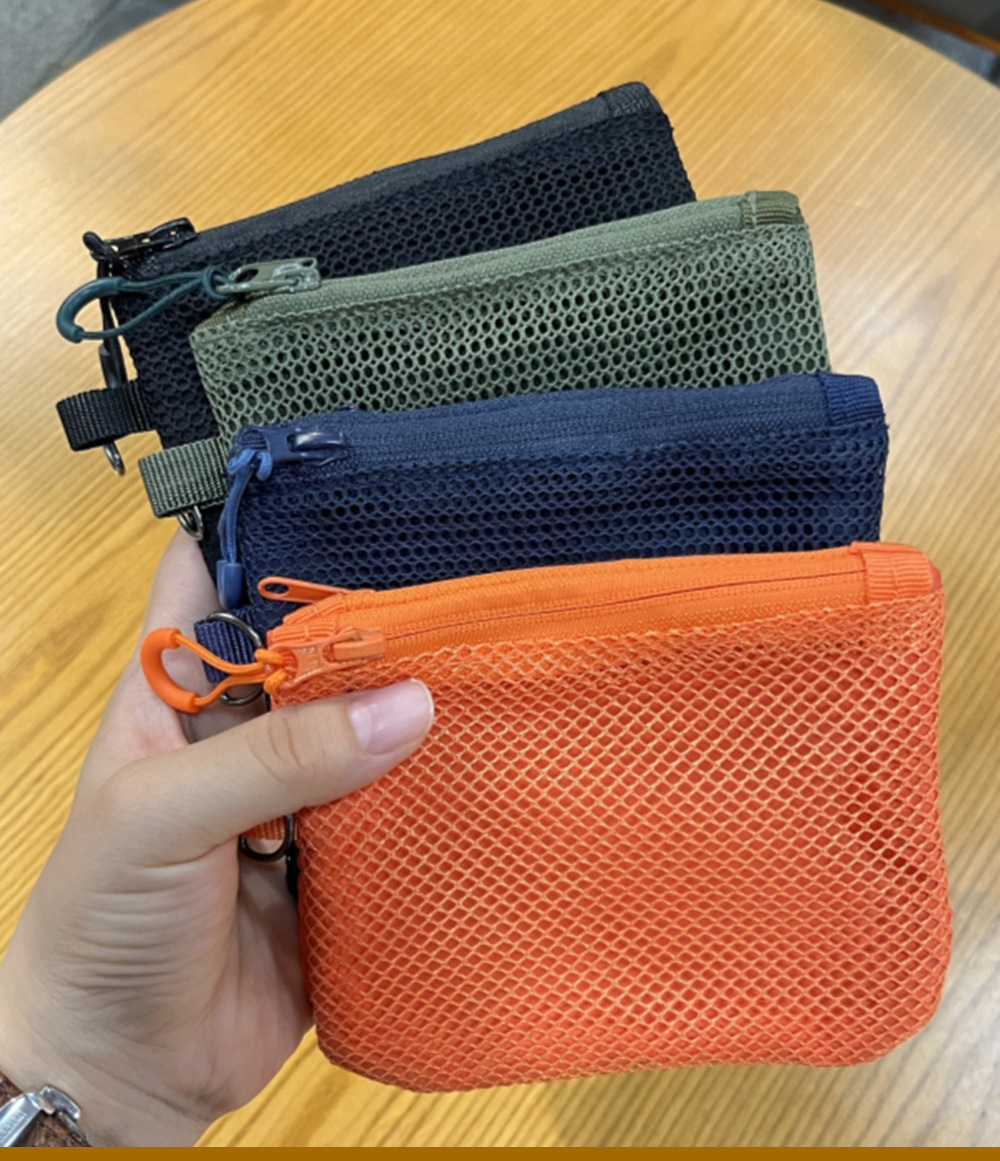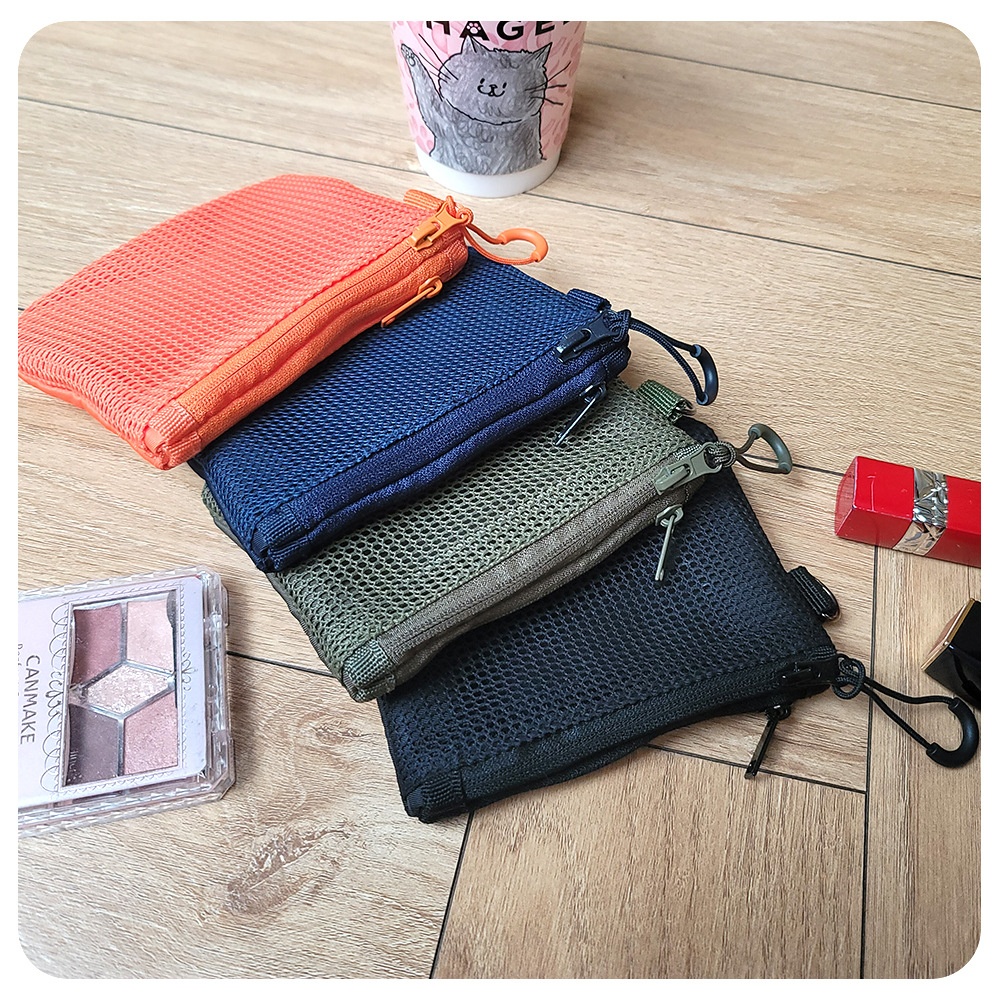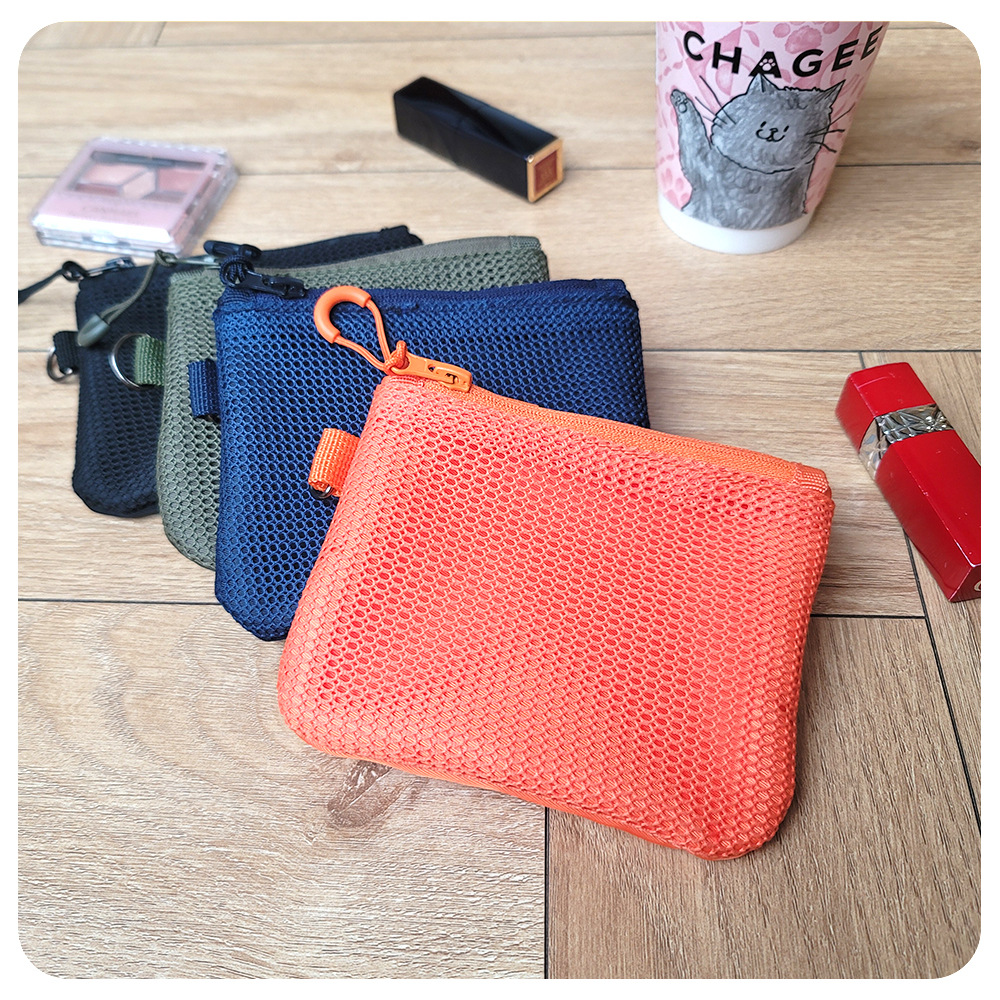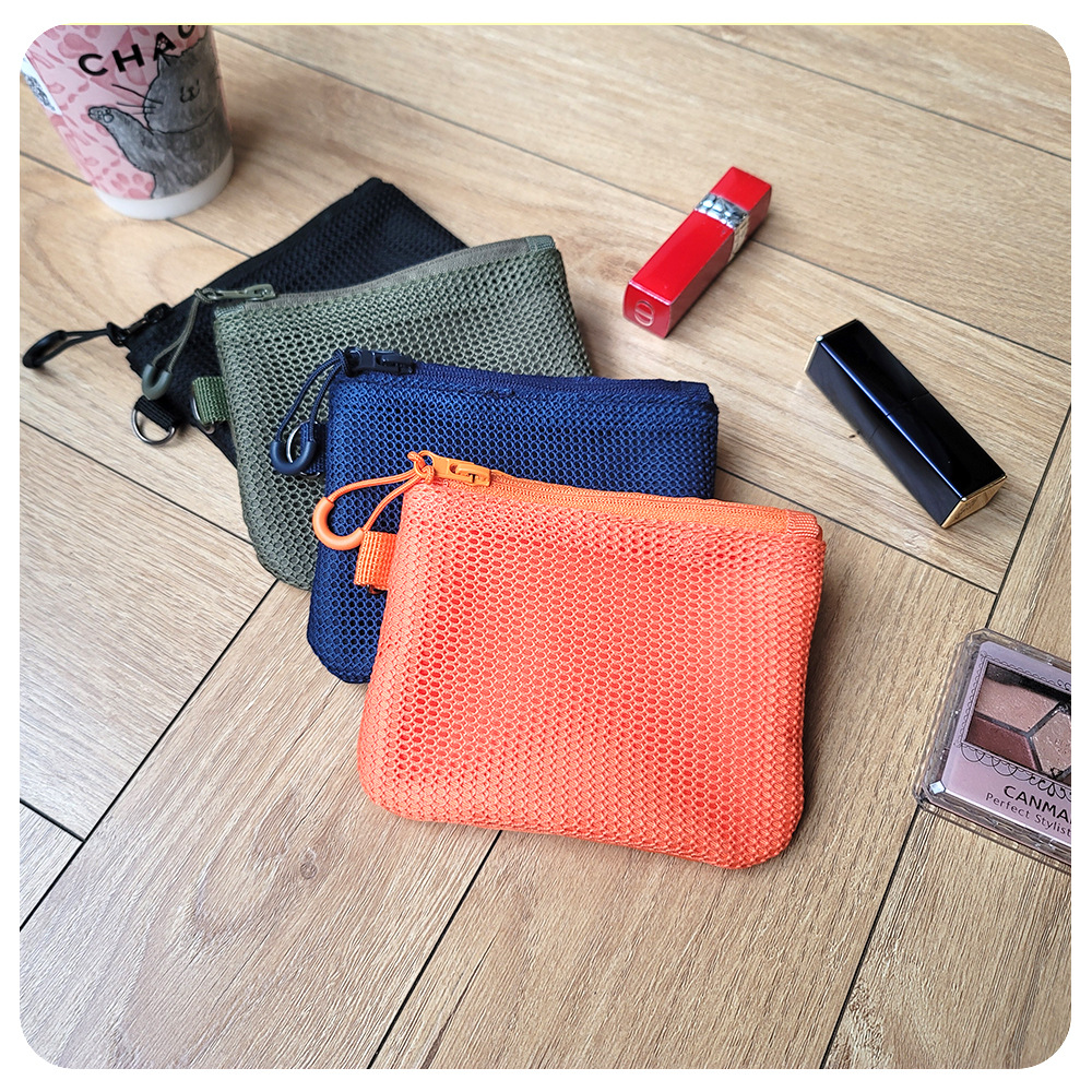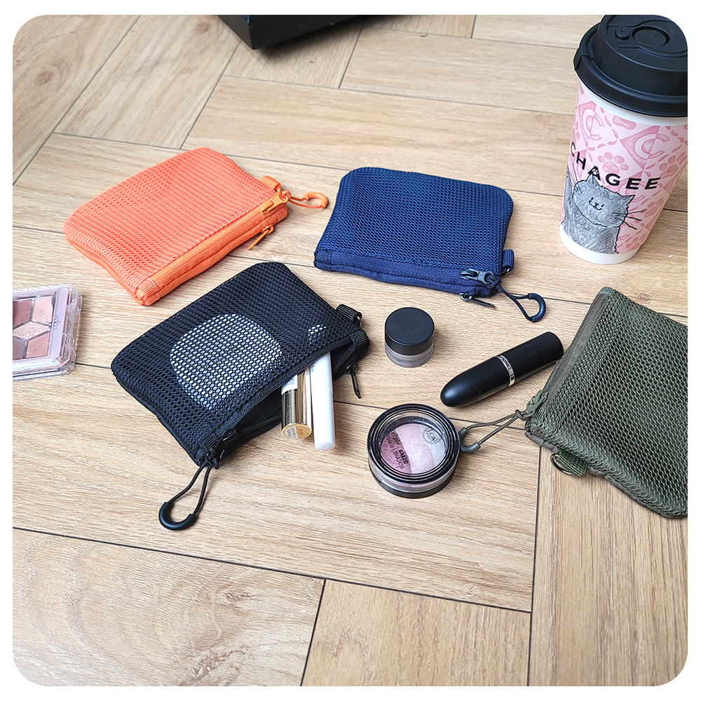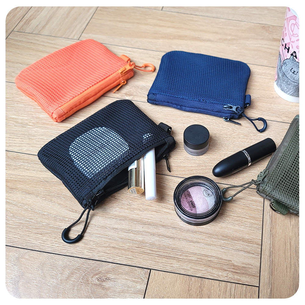 재활용 폴리에스테르 섬유 메쉬 저장 가방 한국 더블 레이어 지퍼 가방 작은 저장 가방 휴대용 립스틱 변경 잡화