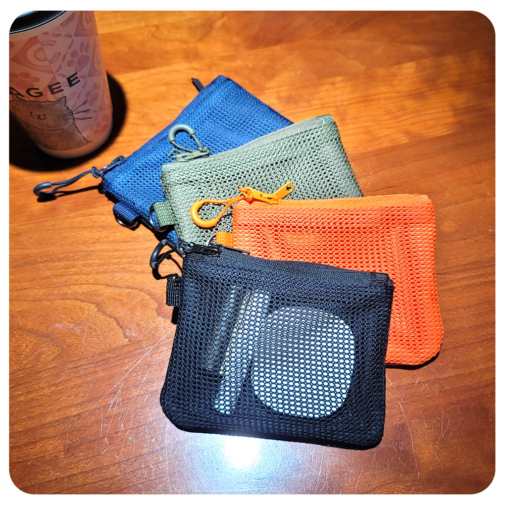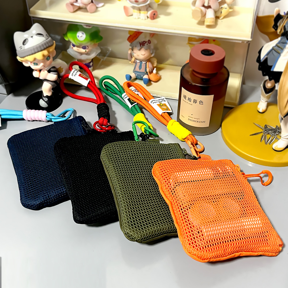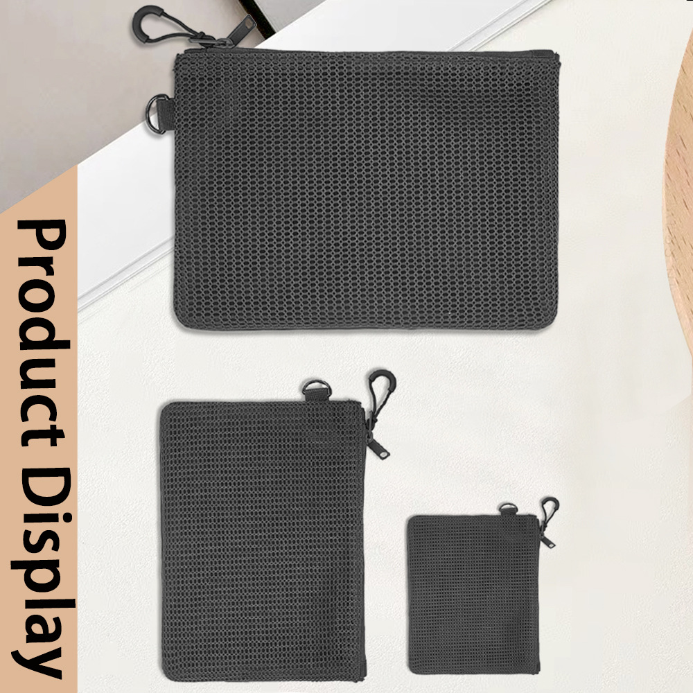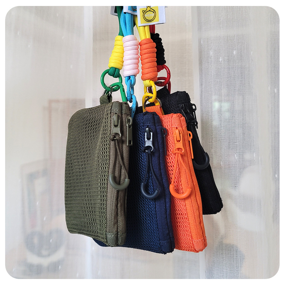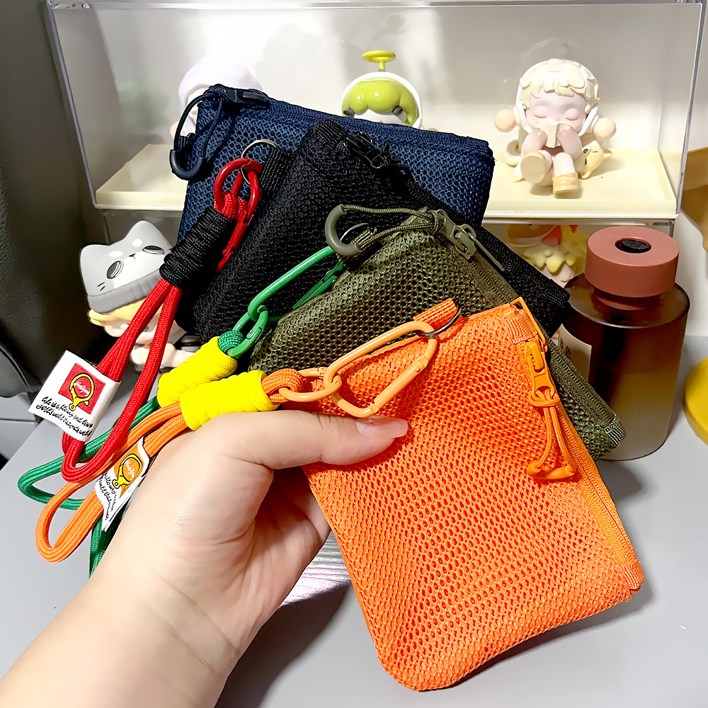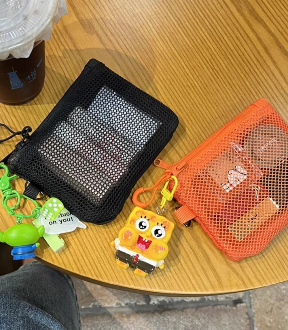 재활용 폴리에스테르 섬유 메쉬 저장 가방 한국 더블 레이어 지퍼 가방 작은 저장 가방 휴대용 립스틱 변경 잡화