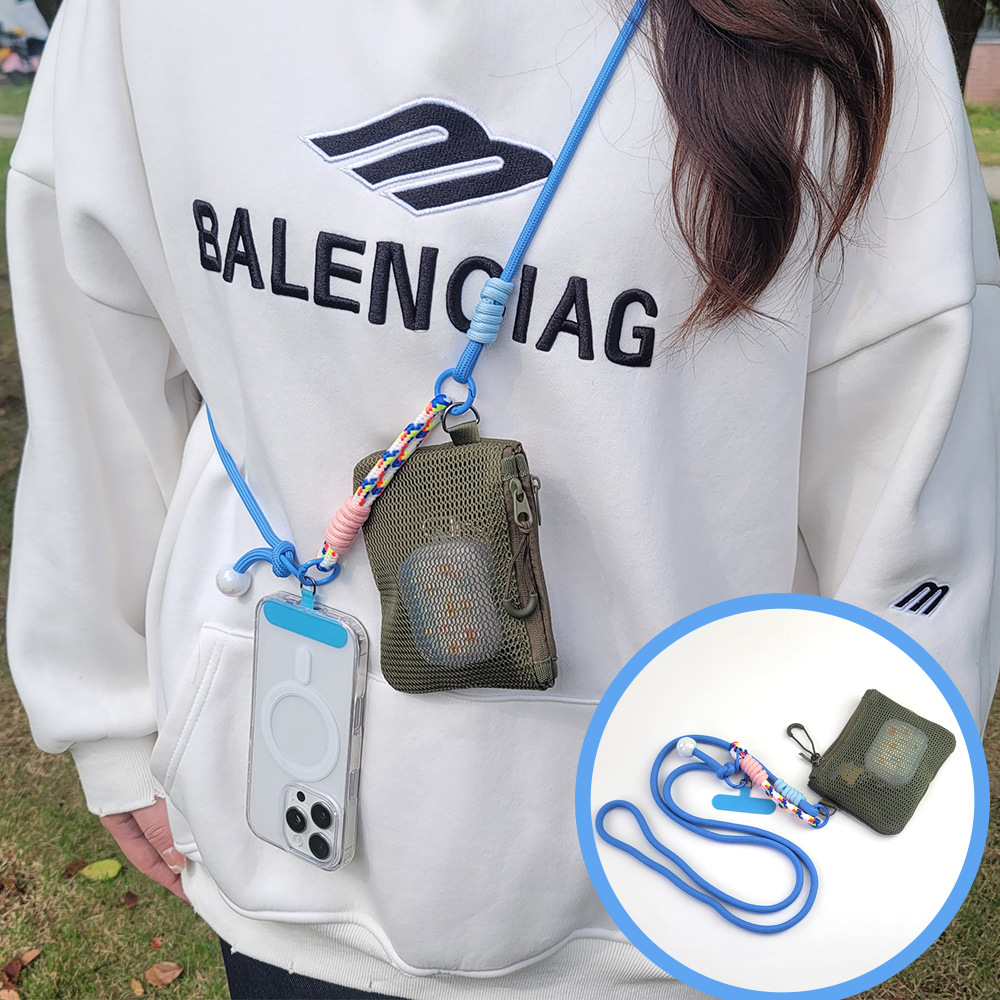 • 더블 지퍼가 달린 새로운 휴대폰 끈 여행 세트 [밀리터리 그린]