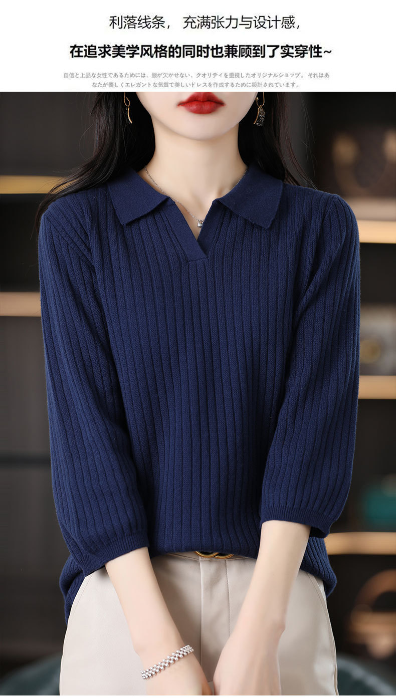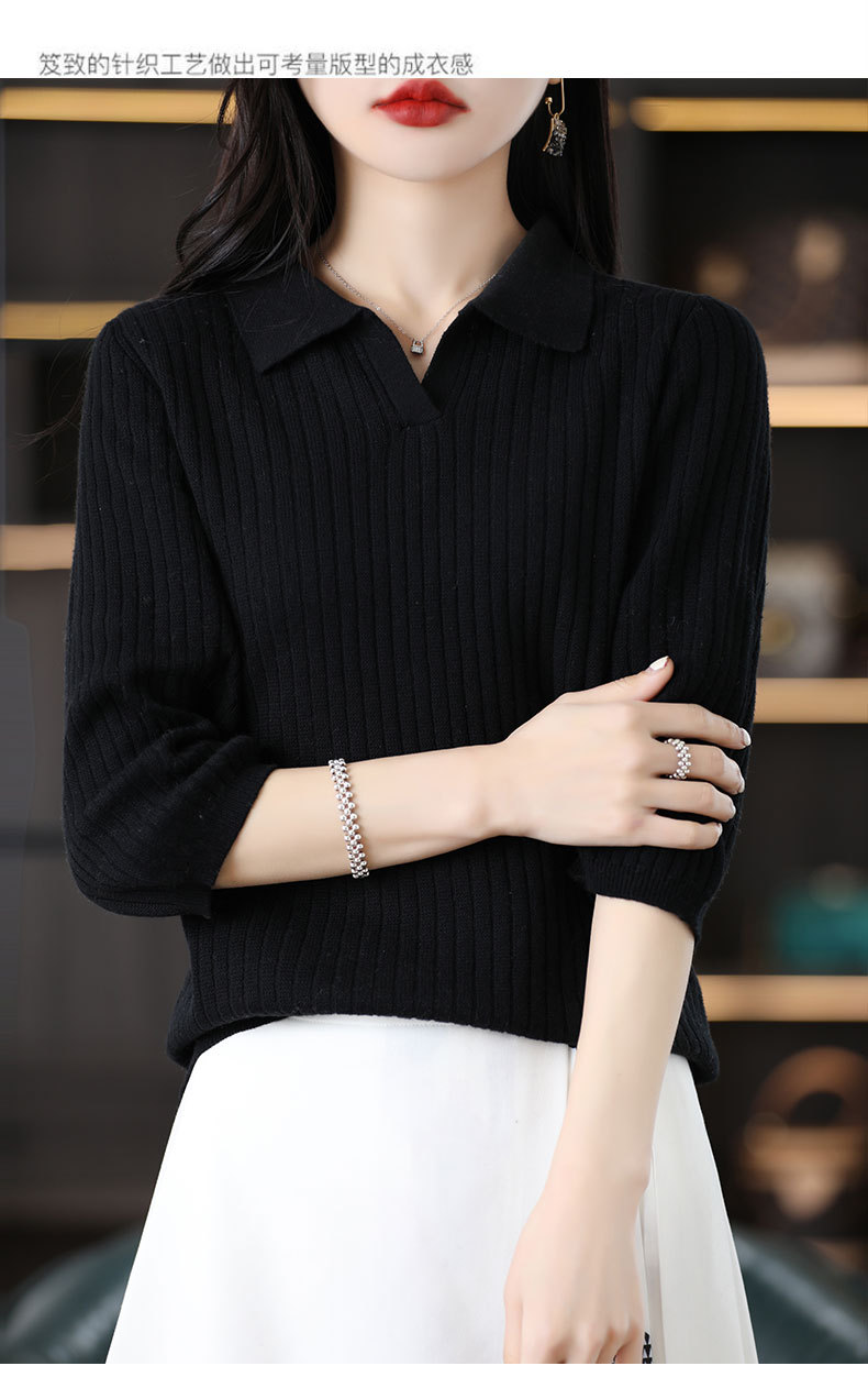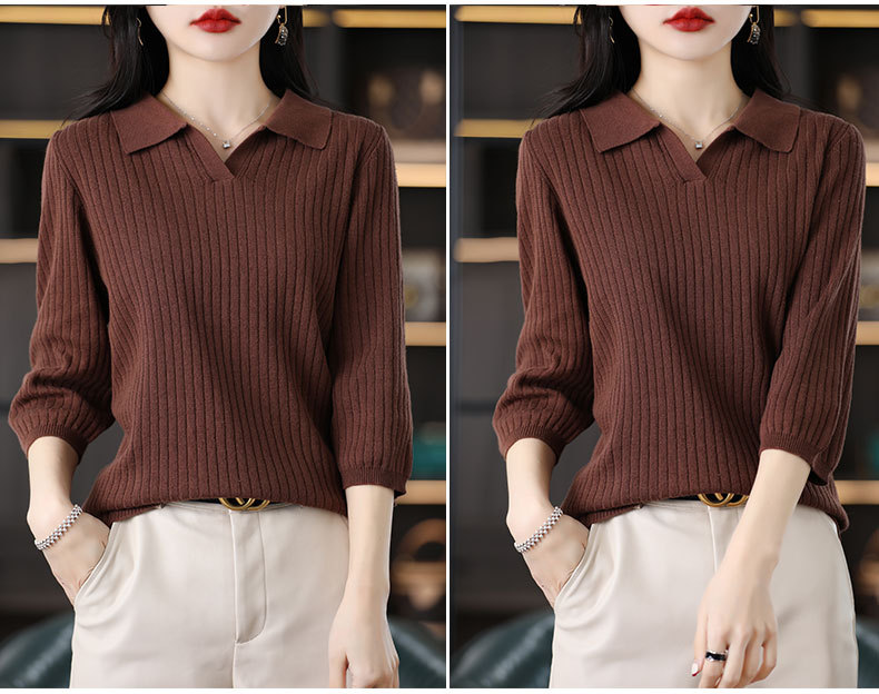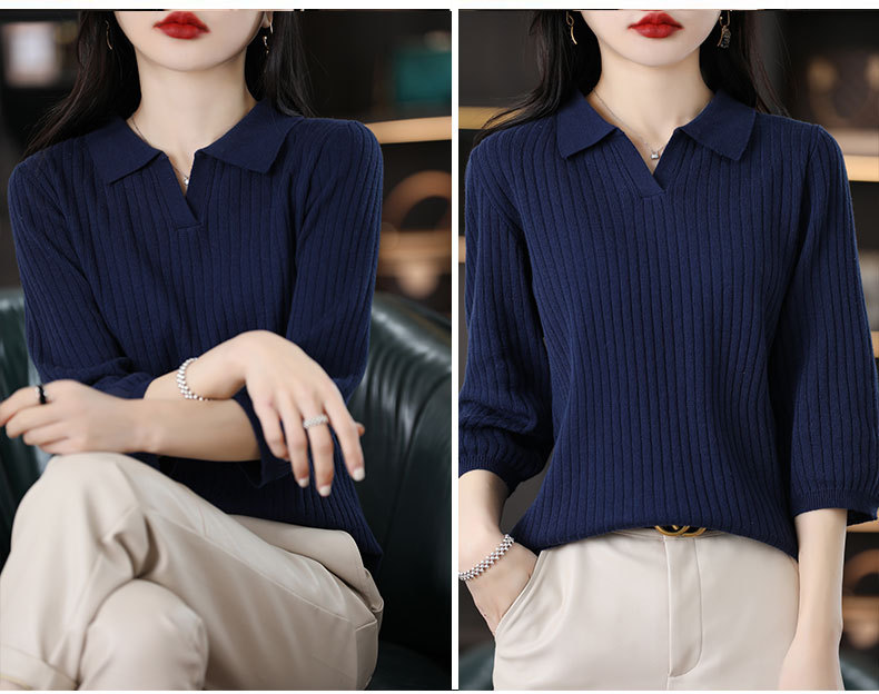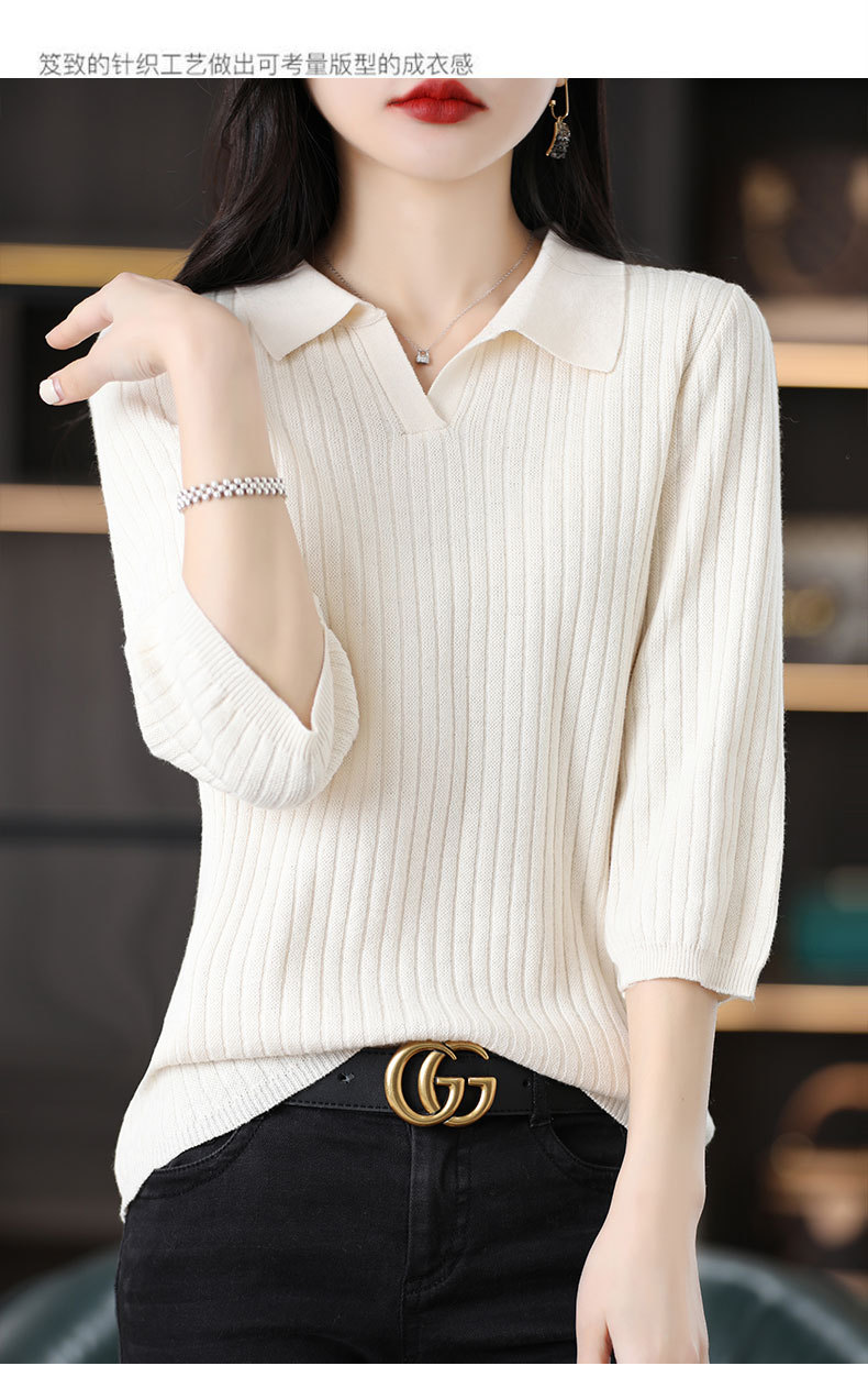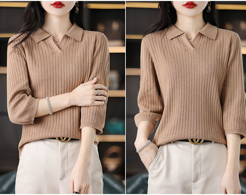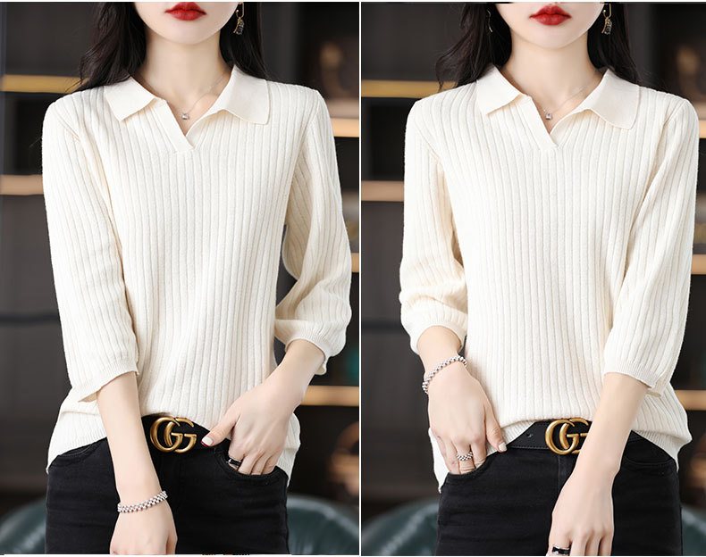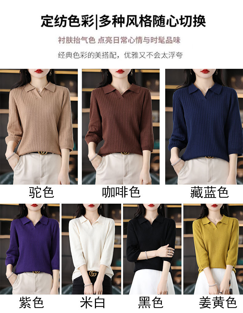 봄과 가을면 POLO 칼라 옷깃 7 소매 니트베이스 셔츠 여성의 느슨한 슬리밍 내부 니트 셔츠스토어 가기