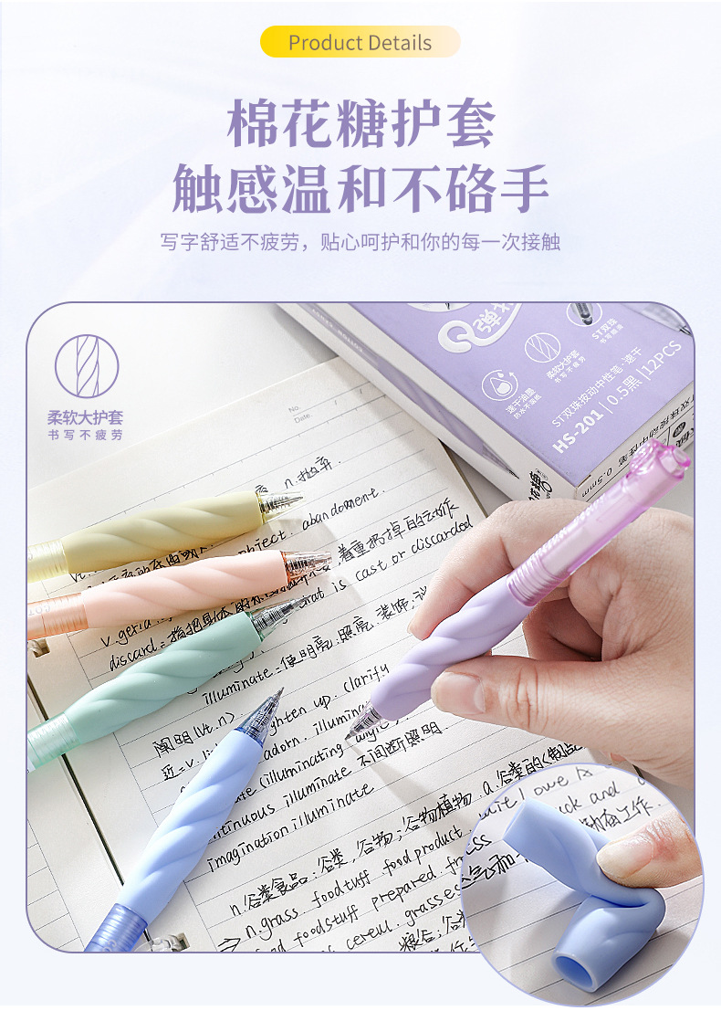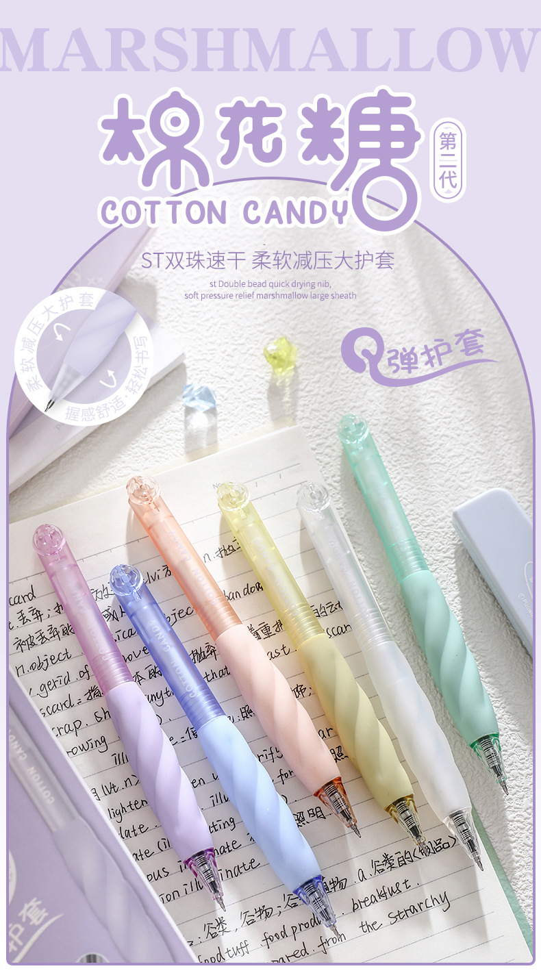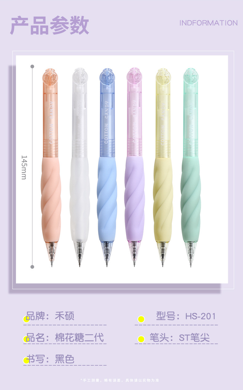 Heshuo 201 Marshmallow Q 탄성 재킷 학생 사무실 0.5mm 블랙 ST 헤드 더블 구슬 건조 대나무 사수 프레스 젤 펜