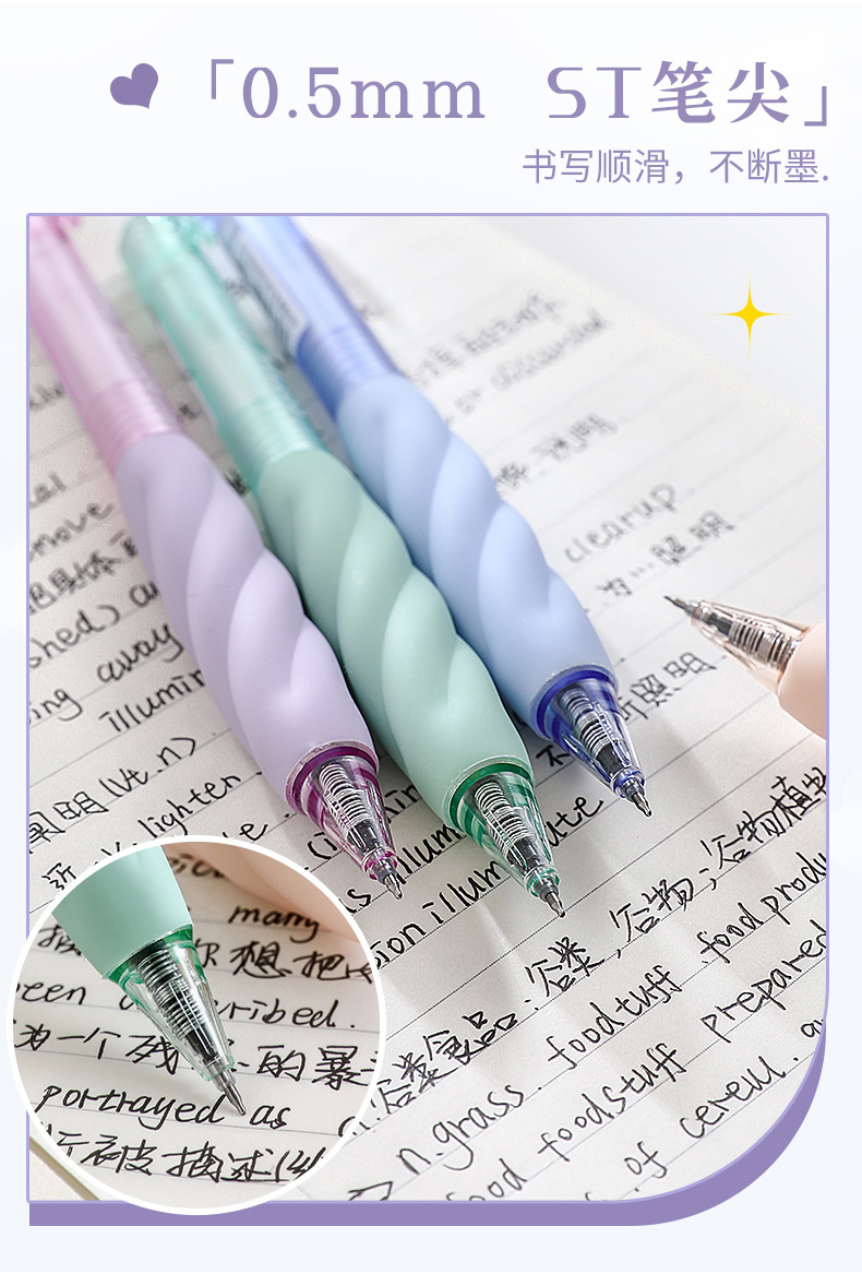 Heshuo 201 Marshmallow Q 탄성 재킷 학생 사무실 0.5mm 블랙 ST 헤드 더블 구슬 건조 대나무 사수 프레스 젤 펜스토어 가기
