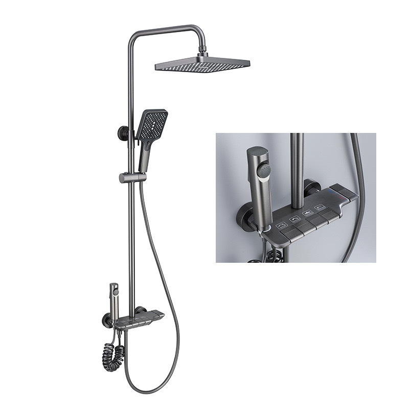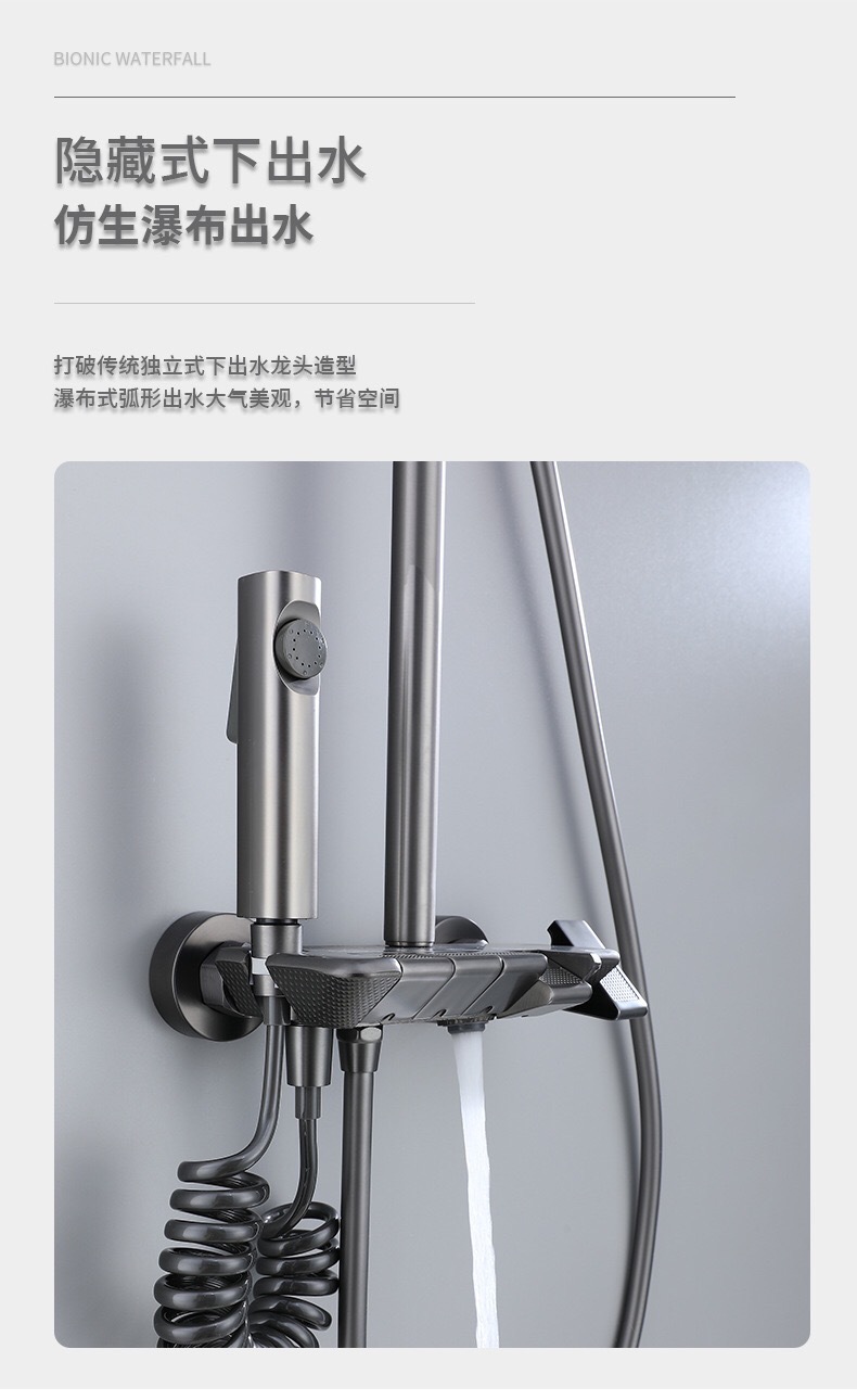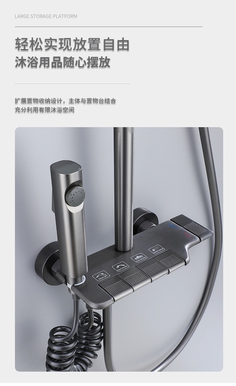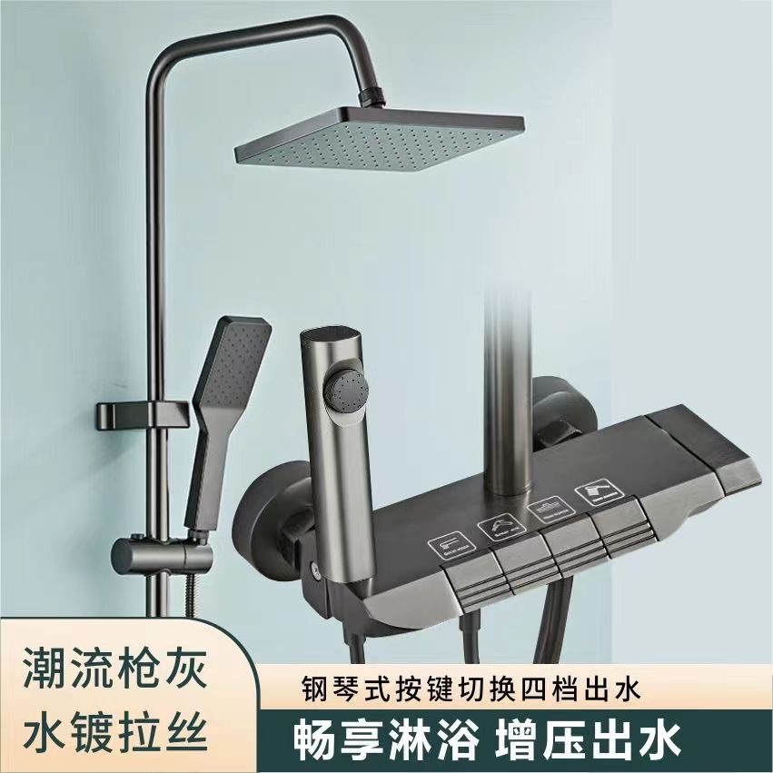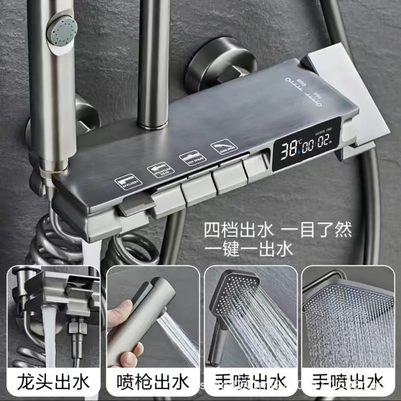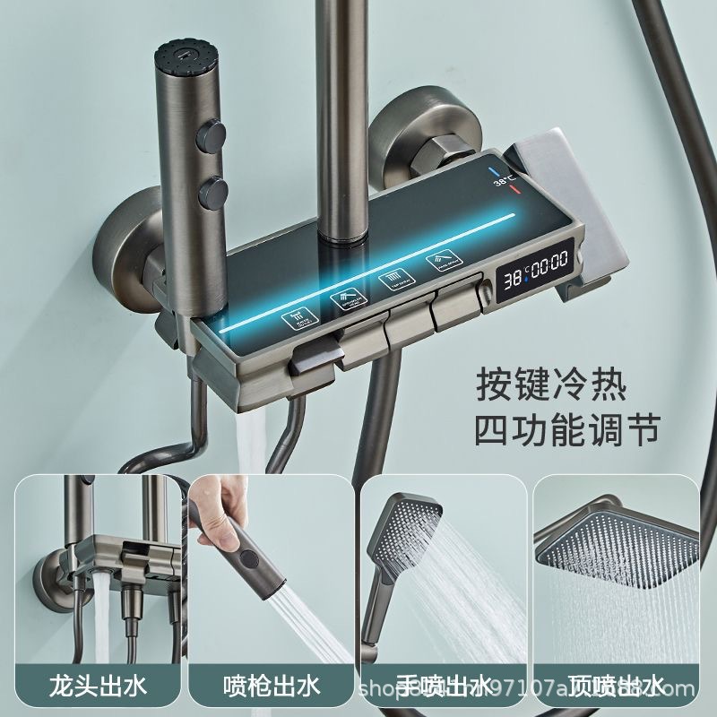 모든 구리 물 도금 회색 황금 황소 샤워 세트 디지털 디스플레이 분위기 램프 샤워 장비 샤워 노즐스토어 가기