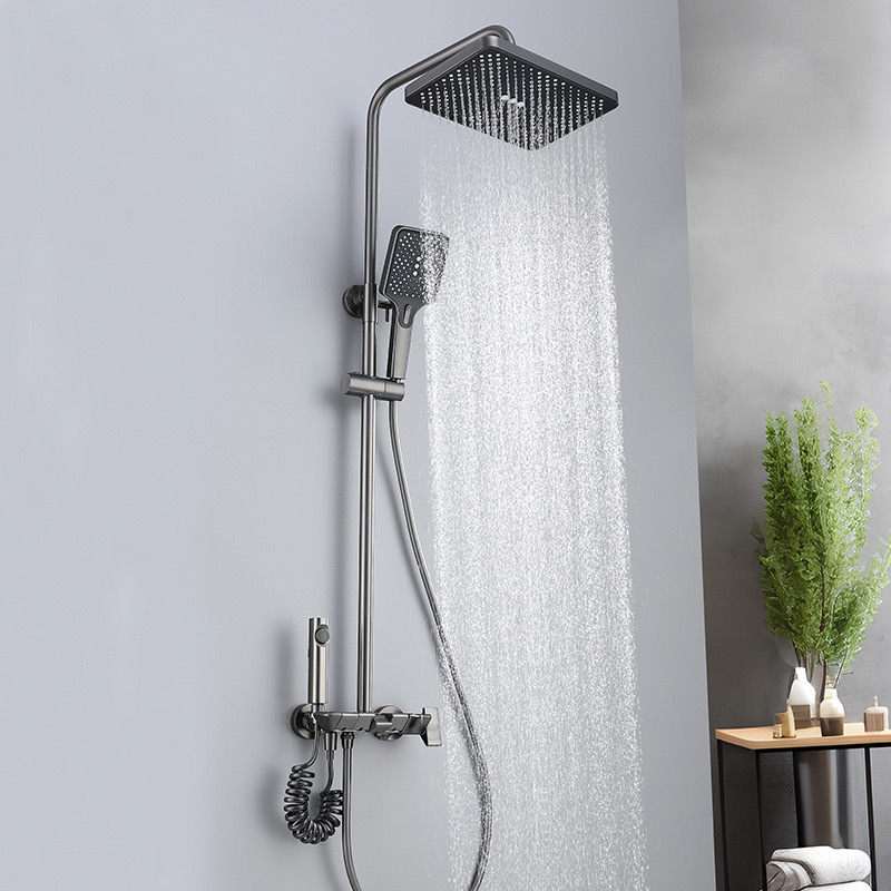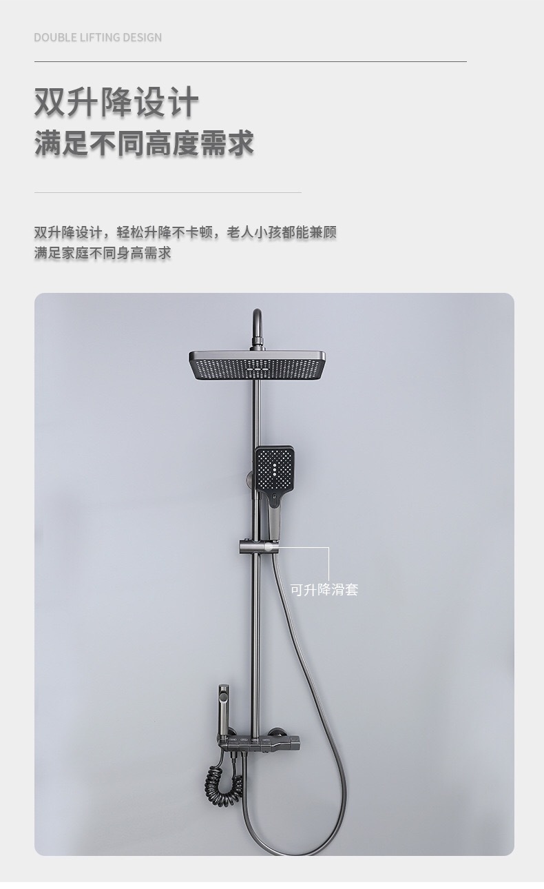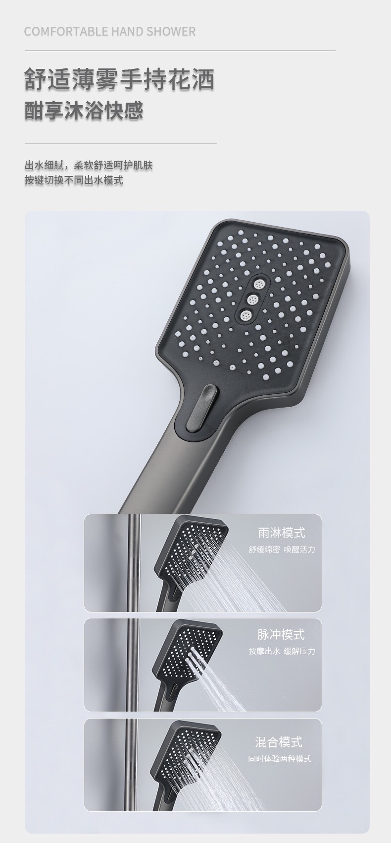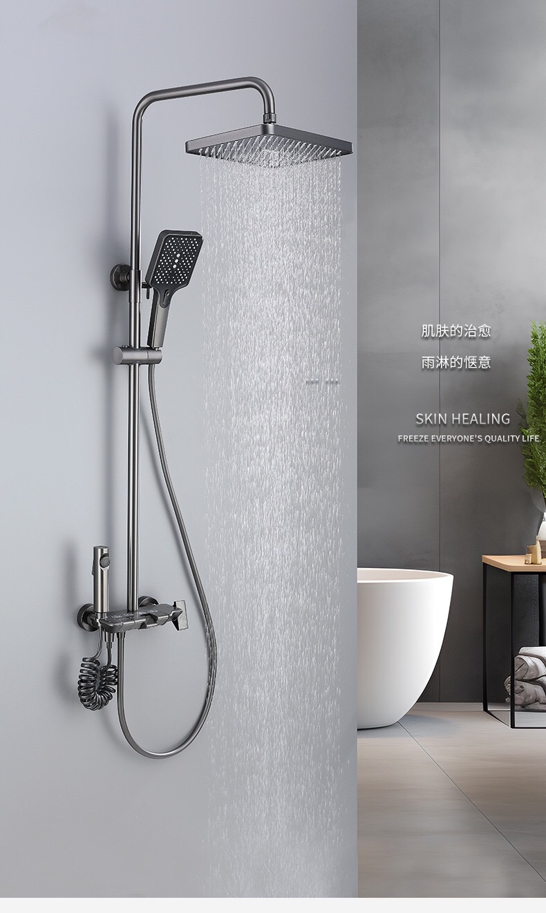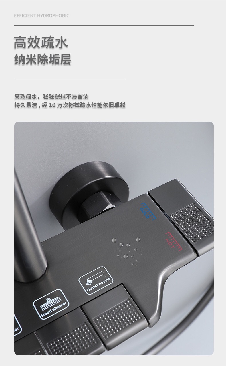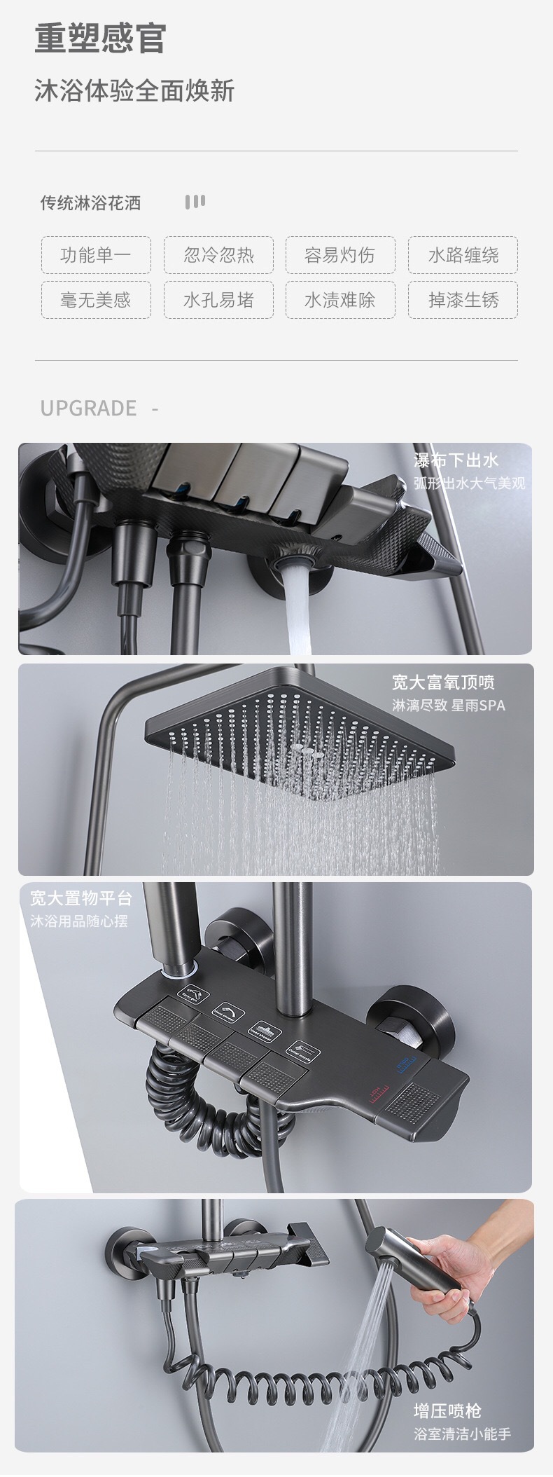모든 구리 물 도금 회색 황금 황소 샤워 세트 디지털 디스플레이 분위기 램프 샤워 장비 샤워 노즐