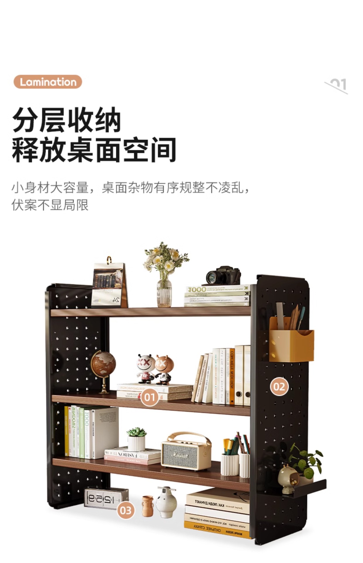 데스크탑 스토리지 랙 데스크톱 책장 홀 보드 데스크 스토리지 학생 홈 컴퓨터 데스크 마무리 랙 레이어드 랙