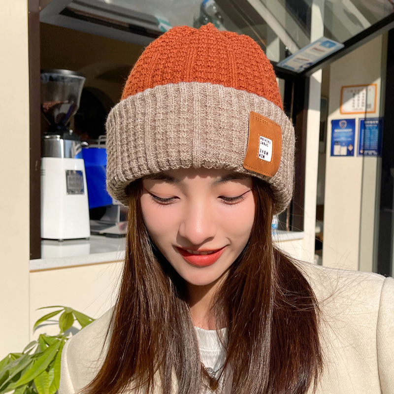 인터넷 레드햇 여자 가을과 겨울 한국식 올매치 울 모자 유행 양면 라벨링 따뜻한 콜드 햇 큰 머리 와이 니트 모자스토어 가기