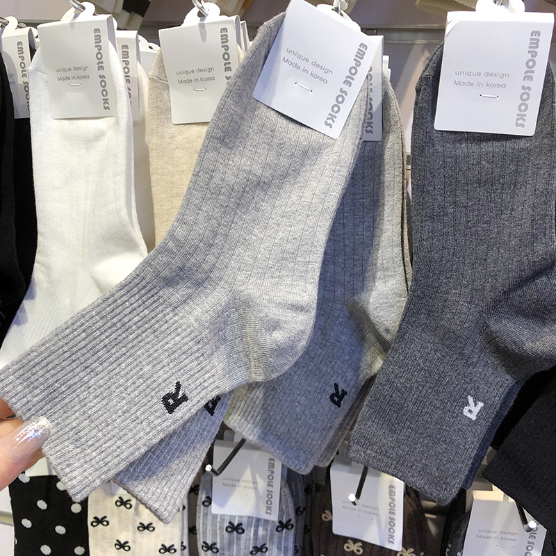 한국 수입 양말 EMPOLE 커플 유행 여성 양말 Ins 윈드 레터 R 미드 튜브 양말 솔리드 컬러 스포츠 코튼 양말스토어 가기