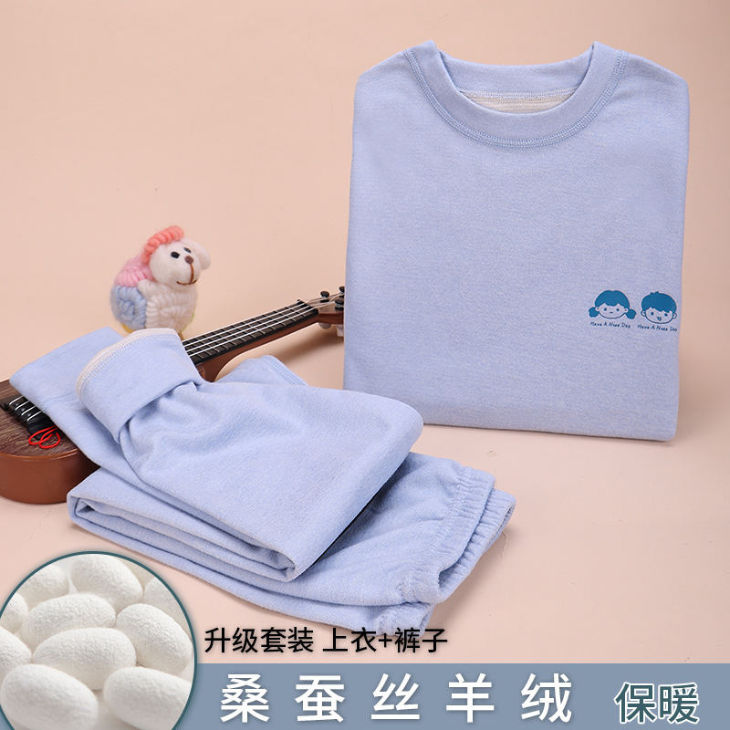 양모 뽕나무 실크 어린이 열 속옷 세트 가을과 겨울 남녀 가을 옷과 바지 기모 면 스웨터 조끼스토어 가기
