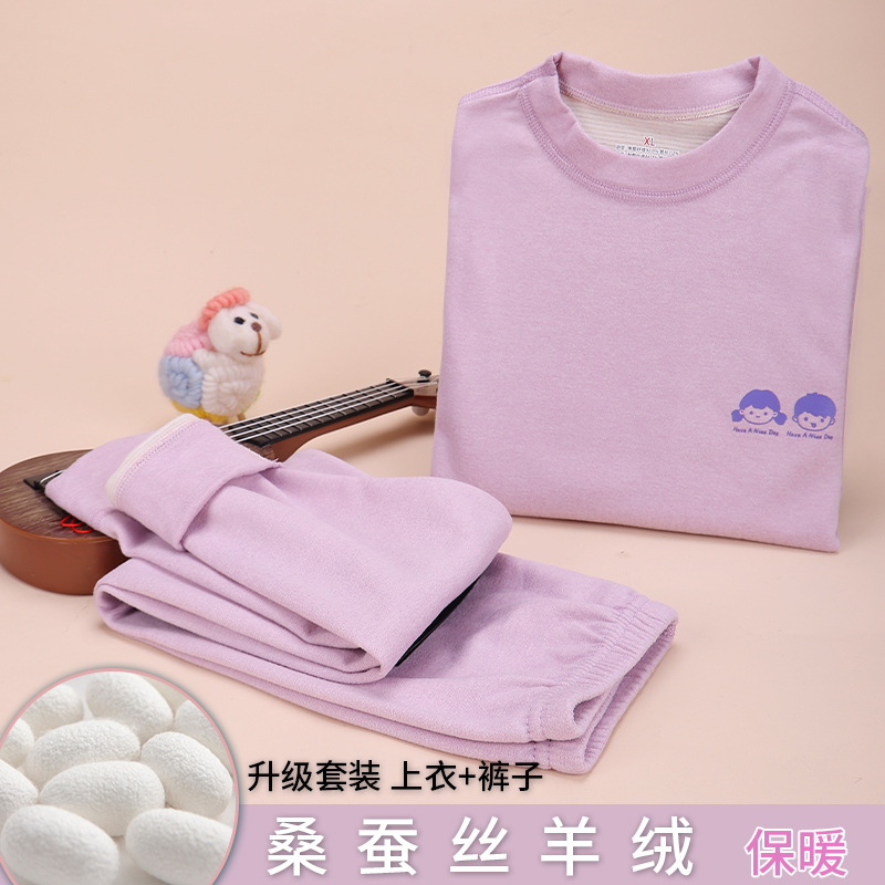 양모 뽕나무 실크 어린이 열 속옷 세트 가을과 겨울 남녀 가을 옷과 바지 기모 면 스웨터 조끼